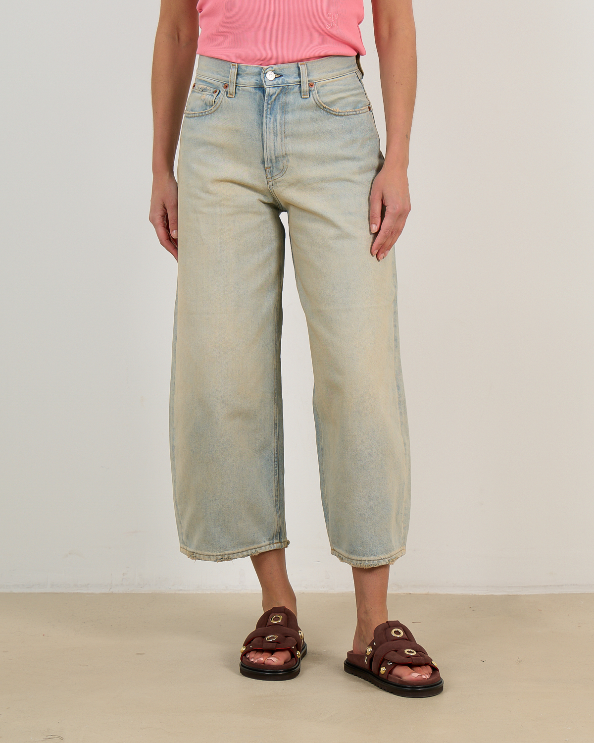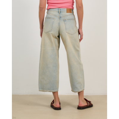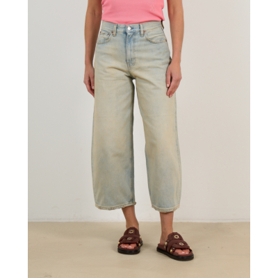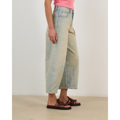 Deze gecroppte wide leg jeans in lichtblauwe wassing combineert hedendaagse comfort met vintage charme. Het 100% katoenen denim heeft een relaxed pasvorm die elegantie uitstraalt. De klassieke vijfzaksindeling en knoopsluiting geven een tijdloze uitstraling, terwijl de verkorte lengte een moderne twist toevoegt. De subtiele stonewashed finish zorgt voor een verfijnde, gedragen look die zowel casual als chic oogt.