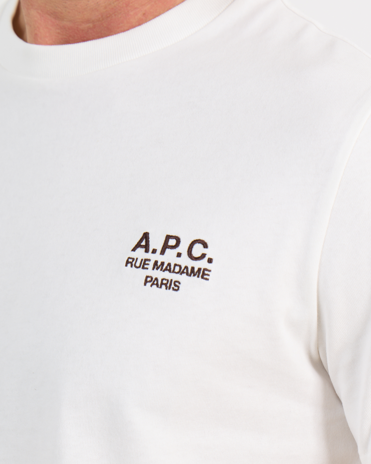 Dit witte T-shirt van A.P.C. combineert minimalistische elegantie met hoogwaardige kwaliteit. De korte mouwen en ronde hals zorgen voor een klassieke snit, terwijl het subtiele merklogo op de borst een verfijnd detail toevoegt. Het zachte katoen voelt comfortabel aan en houdt zijn vorm na vele wasbeurten. De relaxed fit biedt bewegingsvrijheid en draagt prettig de hele dag.