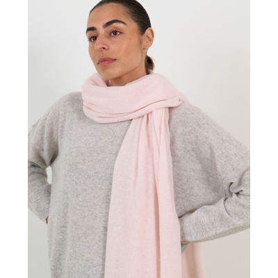 Deze elegante cashmere sjaal in een zachte roze tint brengt verfijnde luxe naar je garderobe. De fijne breistof van 100% cashmere voelt heerlijk zacht aan en geeft de sjaal een fluweelachtige uitstraling. Met zijn ruime afmetingen draagt de sjaal comfortabel en valt hij prachtig om je nek. De delicate roze kleur straalt vrouwelijke elegantie uit en vormt een stijlvolle aanvulling op zowel casual als formele looks.