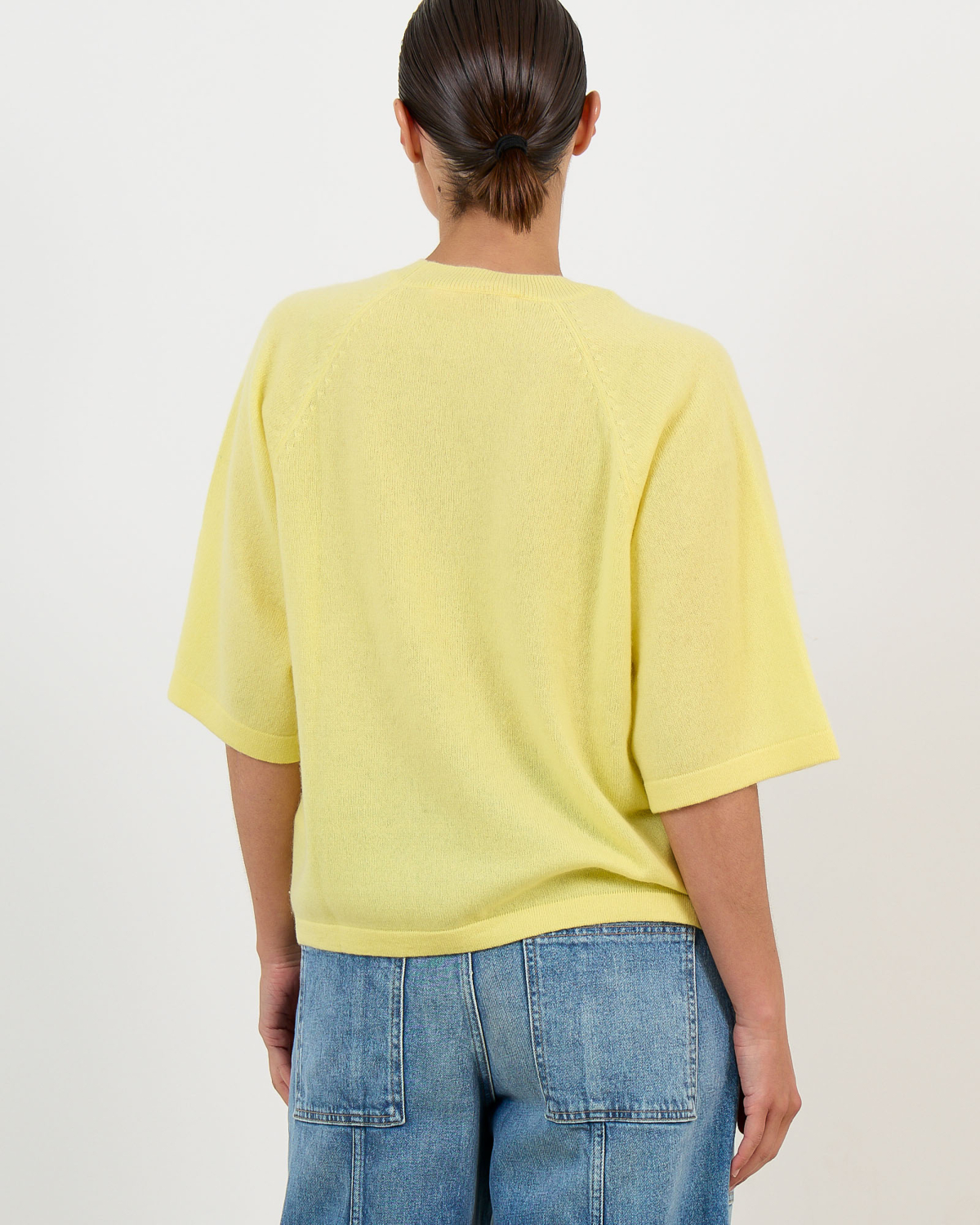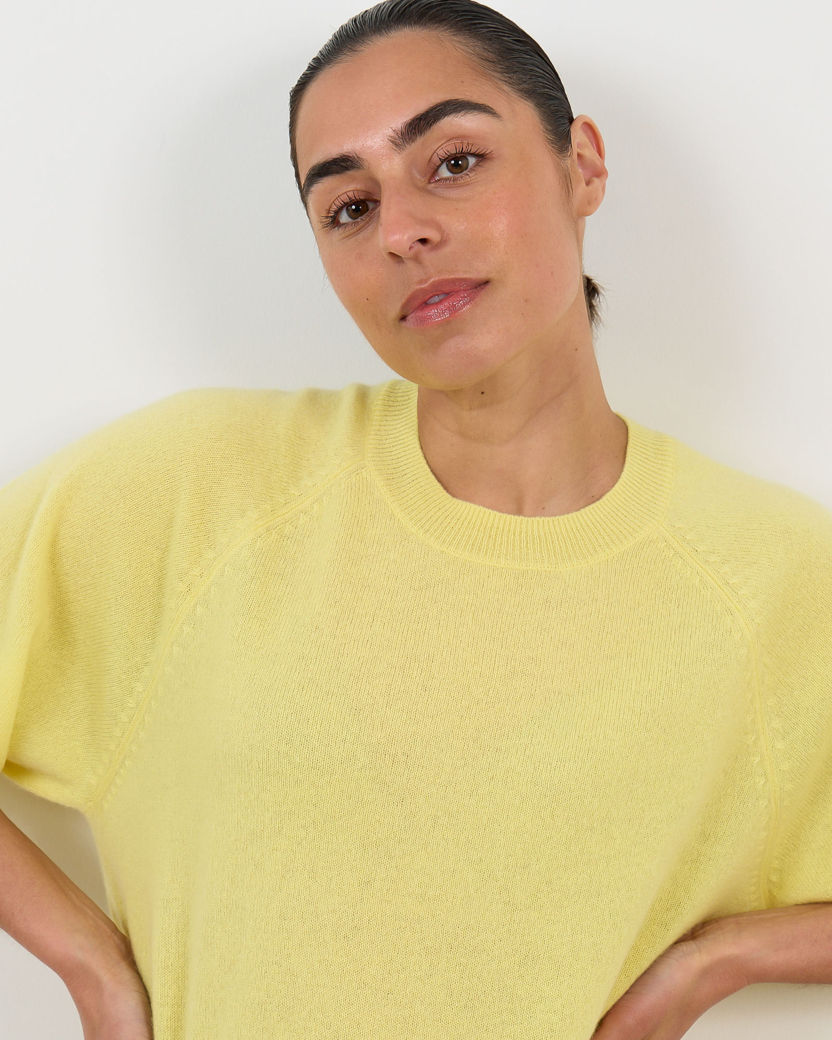 Deze gele cashmere trui straalt pure luxe uit. Het 100% cashmere materiaal van Absolut Cashmere voelt zacht aan en biedt ademend comfort. De relaxed fit en korte mouwen zorgen voor een moderne, ontspannen uitstraling. De ronde hals en ribgebreide afwerking aan kraag, mouwen en zoom geven de trui een verfijnde finish.