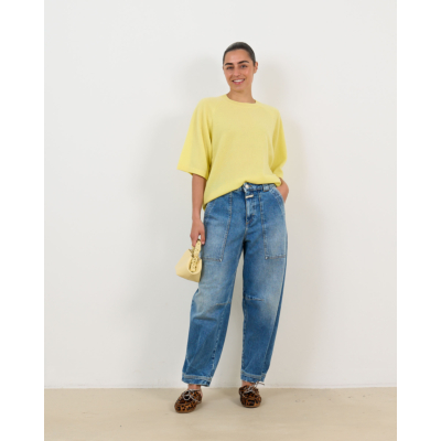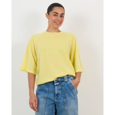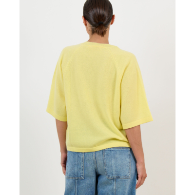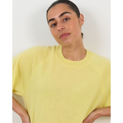 Style Advies: Combineer deze Leana Cashmere Korte Mouwen Trui Lemon Fizz met een hoge taille jeans voor een casual chique look. Draag het item ook bij een midi rok of wijde pantalon voor een elegant ensemble. De gele kleur vormt een mooie basis voor neutrale tinten zoals beige, wit of navy. Perfect voor je dames kleding collectie van Absolut Cashmere.