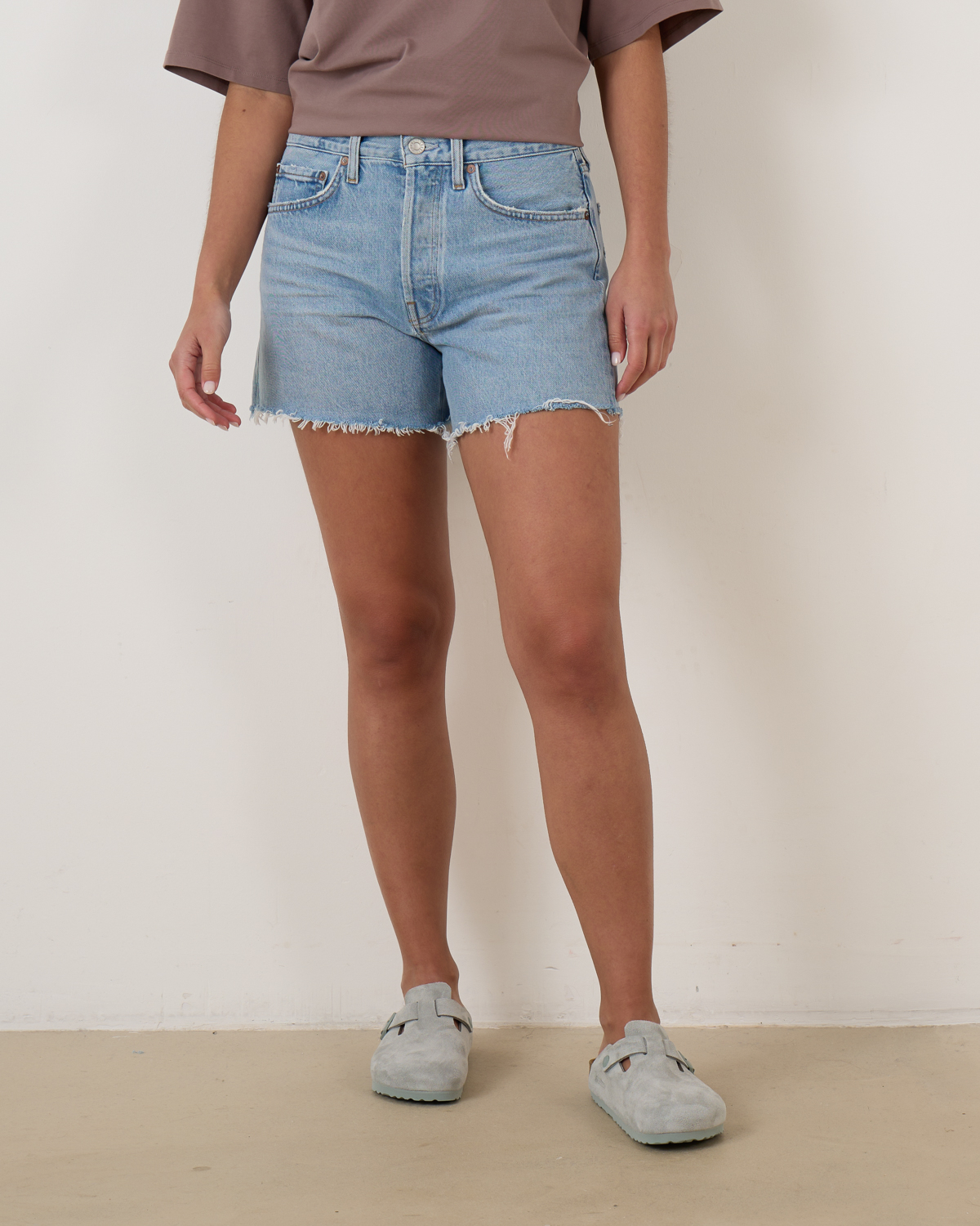 De Parker Long Shorts van Agolde is geïnspireerd op het iconische Parker Short-model, maar heeft nu een iets langere pijplengte. Deze shorts biedt een relaxte pasvorm en is uitgevoerd in een klassieke 5-pocketstijl. Ontdek deze denim blauwe shorts nu!