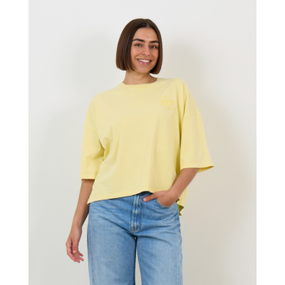 Dit gele t-shirt straalt pure zomerse energie uit. De zachte katoenen stof met regular fit zorgt voor optimaal draagcomfort, terwijl de korte mouwen en ronde hals een tijdloze basis vormen. Het opvallende bloemmotief op de voorzijde geeft dit 100% katoenen shirt een speelse, eigentijdse uitstraling. Vier kleine gaatjes aan de achterzijde voegen een subtiel designdetail toe.