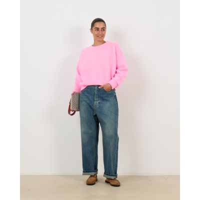 Deze trui in roze straalt moderne elegantie uit met een speelse twist. Het luxe materiaal van 34% alpaca, 34% wol, 29% polyamide en 3% elastaan biedt heerlijke zachtheid en flexibiliteit. De oversized pasvorm creëert een relaxte maar stijlvolle uitstraling, terwijl de lange mouwen en ronde hals zorgen voor een tijdloos ontwerp. De geribde afwerkingen aan mouwen en zoom geven de trui een verfijnde finish.