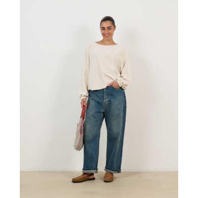 De Fuxow sweater combineer je perfect met een high-waist jeans voor een relaxte look, of draag hem over een midi-rok voor een moderne twist. Voor een elegante casual stijl past deze witte sweater van American Vintage uitstekend bij een wijde pantalon en minimalistische sneakers.