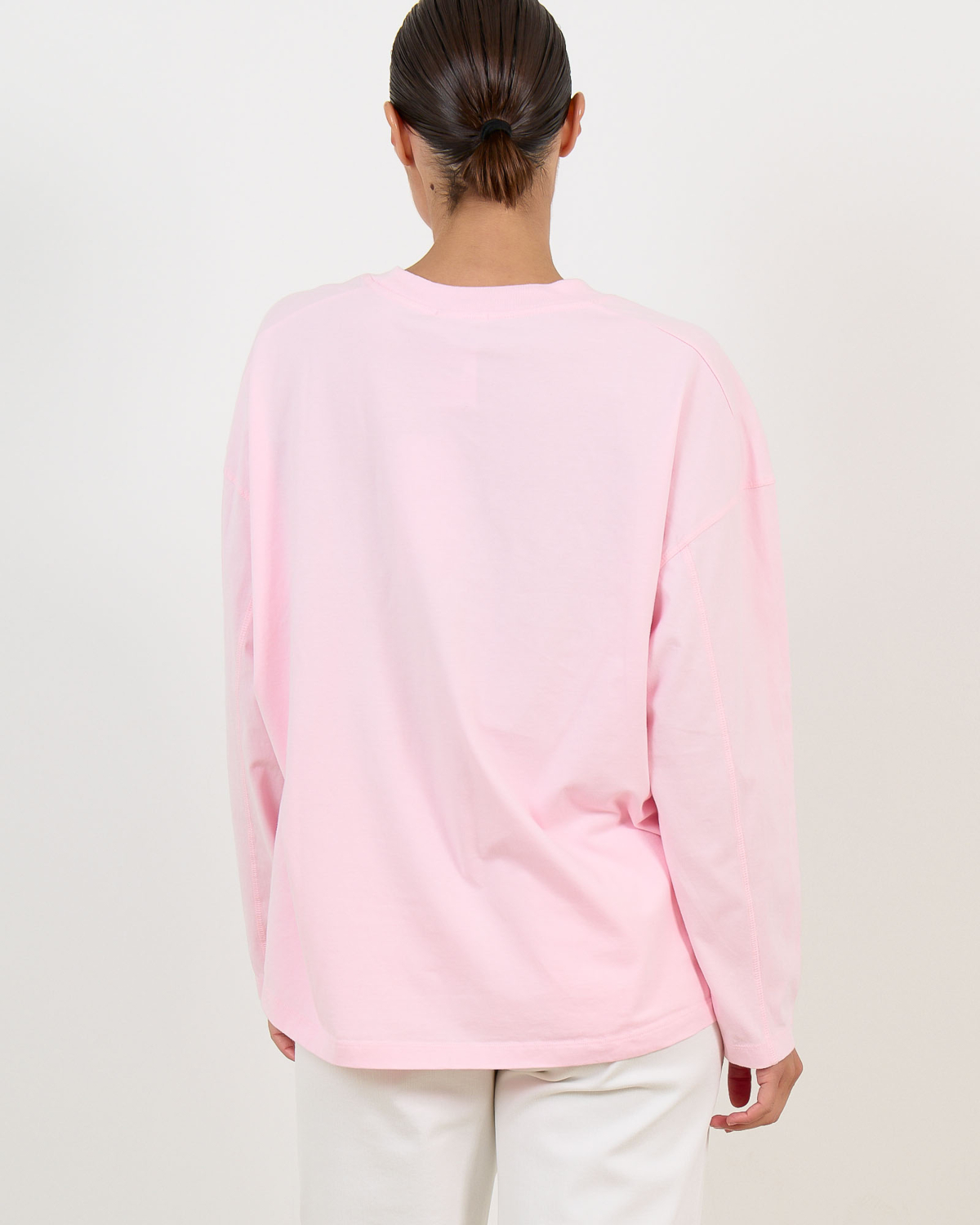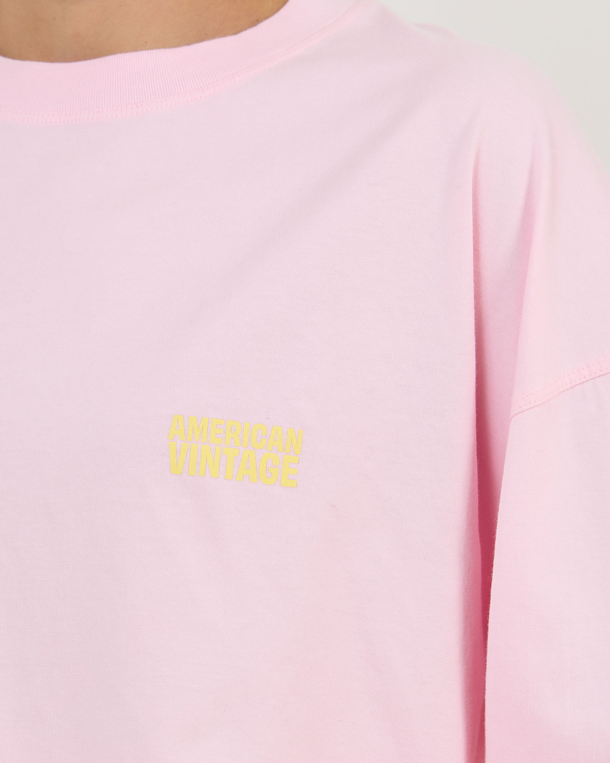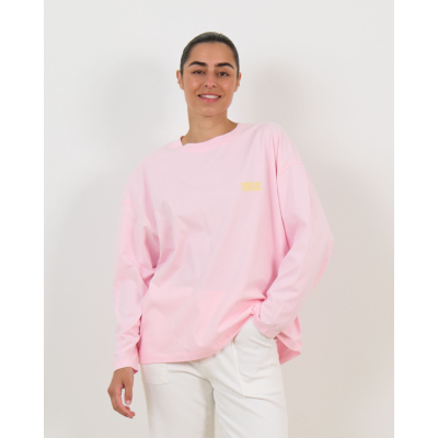 Deze oversized longsleeve in zachte rozetint straalt moderne elegantie uit. De ruime pasvorm en lange mouwen zorgen voor ultiem draagcomfort, terwijl het 100% katoenen materiaal het item heerlijk zacht maakt. Het subtiele gele 'American Vintage' logo op de voorzijde geeft deze longsleeve een authentieke touch. De klassieke ronde hals en de relaxte snit maken dit een veelzijdig basisstuk.