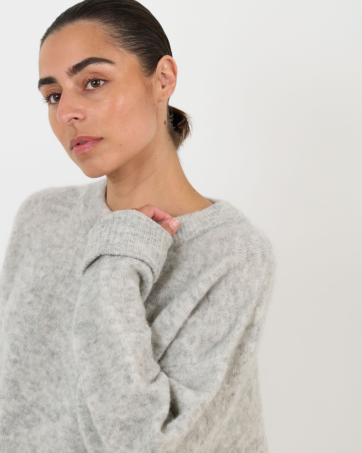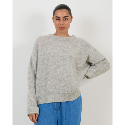 Deze verfijnde grijze trui straalt elegante nonchalance uit. De luxueuze alpacamix van 34% alpaca, 34% wol, 29% polyamide en 3% elastaan zorgt voor een heerlijk zachte textuur en comfortabel draaggevoel. De relaxed fit en lange mouwen bieden een moderne silhouet, terwijl de ronde hals zorgt voor een tijdloze uitstraling. Deze kwalitatieve breistof valt soepel om het lichaam en behoudt perfect zijn vorm.