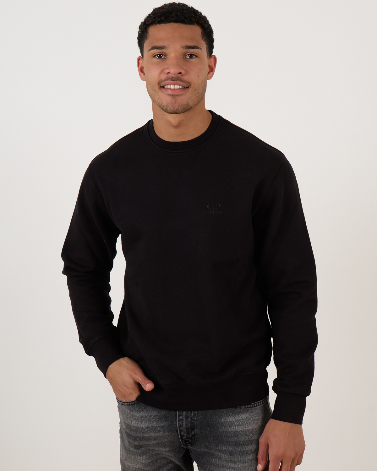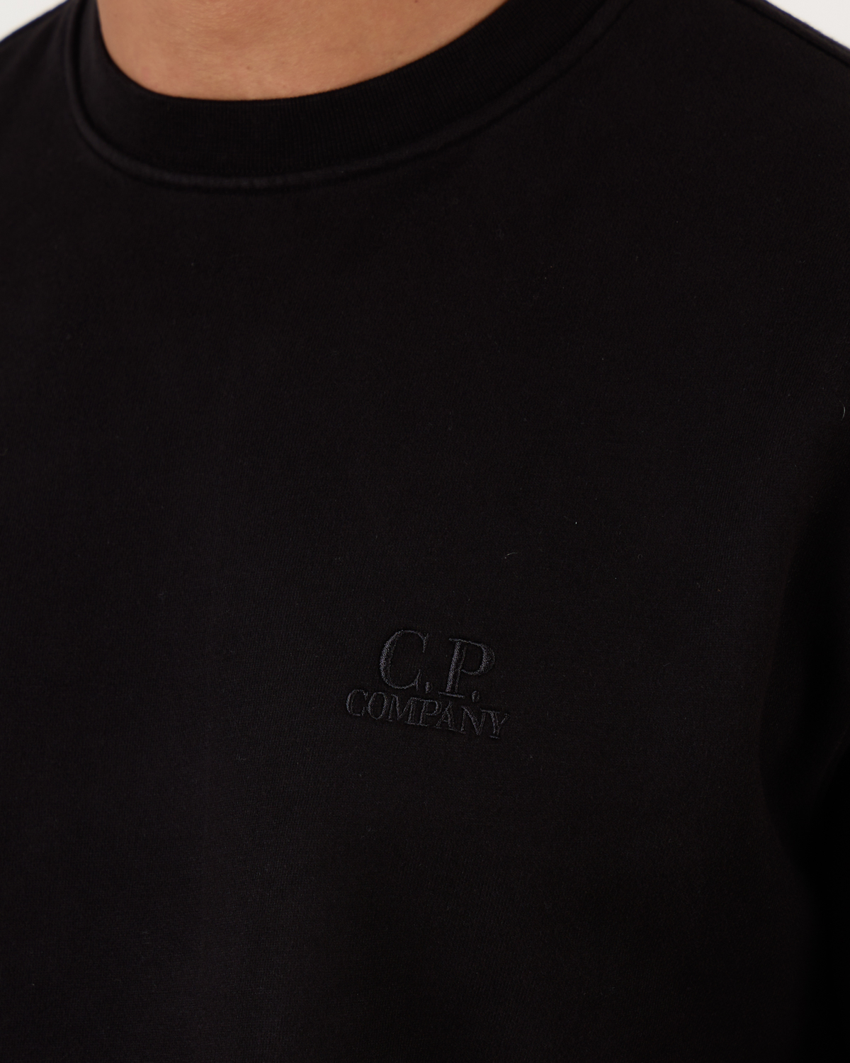 Het Diagonal Brushed Fleece Sweatshirt van C.P. Company is gemaakt van diagonaal opgestikt fleece, een middengewicht katoen die een stevig gevoel biedt. De sweater komt in het zwart en is afgewerkt met een C.P. Company logo op de linkerborst en geribde manchetten, zoom en hals.