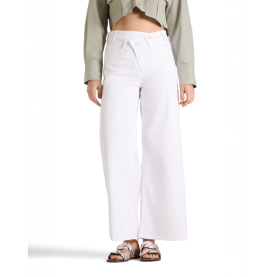Deze witte asymmetrische pantalon combineert eigentijdse vormgeving met optimaal draagcomfort. De baggy fit zorgt voor een relaxte uitstraling, terwijl de asymmetrische taille het ontwerp een moderne twist geeft. Vervaardigd uit een hoogwaardige blend van 56% lyocell, 42% katoen en 2% elastaan voor bewegingsvrijheid. Het vijfzaksysteem biedt praktische opbergruimte.