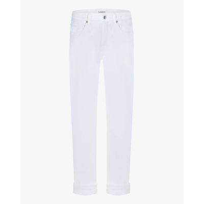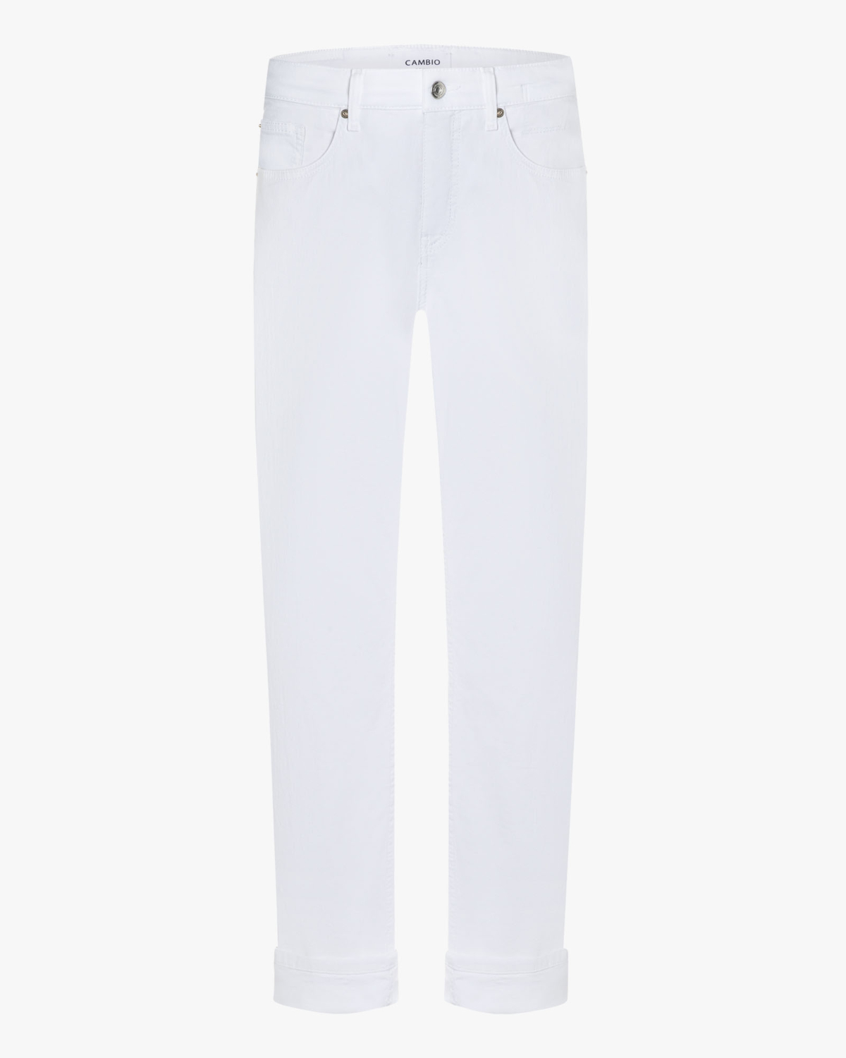 Deze relaxed Gaia pantalon van Cambio combineert prachtig met een gestructureerde blazer voor zakelijke gelegenheden of met een zijden blouse voor een verfijnde look. Voor een casual-chique stijl draag je dit witte exemplaar met een gebreide trui en sneakers, of kies voor een linnen top tijdens warme dagen.