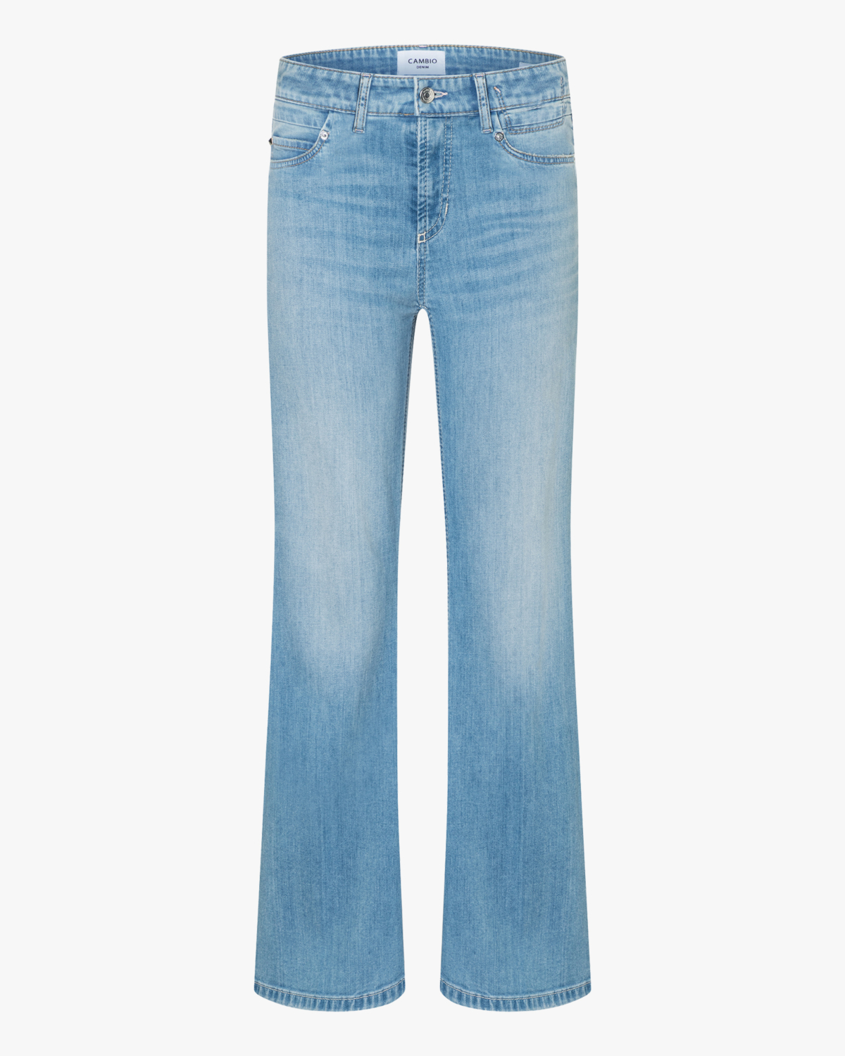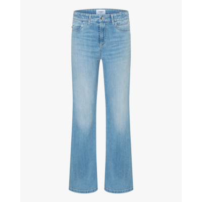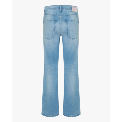 Deze flared jeans van Cambio straalt vintage charme uit met zijn lichtblauwe wassing en klassieke used-look. De regular fit pasvorm zorgt voor een flatteuse silhouet, terwijl de flared pijpen een trendy seventies-vibe toevoegen. Vervaardigd uit een comfortabele mix van 94% katoen, 4% Elastomultiester en 2% Elastaan voor optimale bewegingsvrijheid. De jeans beschikt over een klassieke vijfzakkenindeling en ritssluting met knoopsluiting.