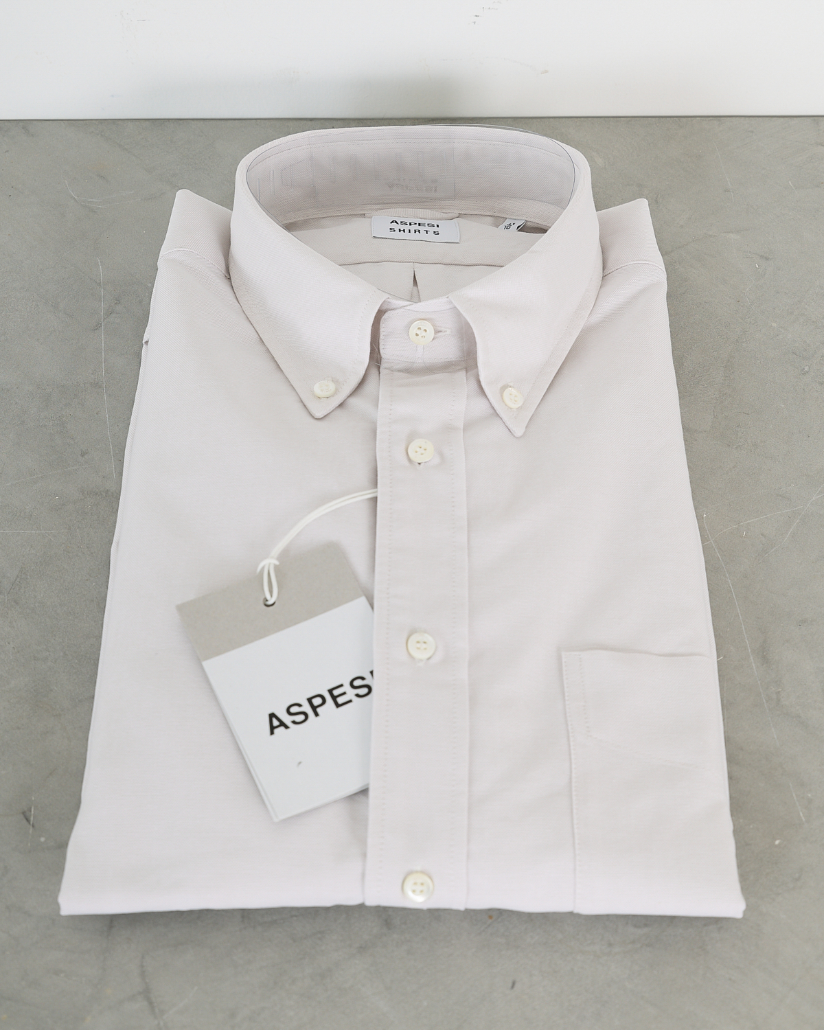Dit casual Oxford overhemd van Aspesi presenteert zich in een elegante kit kleur. De 100% katoenen Oxford stof biedt een verfijnde textuur en uitstekend draagcomfort. De button down kraag met knoopjes zorgt voor een karakteristieke casual uitstraling, terwijl de slim fit snit een moderne silhouetlijn creëert. De lange mouwen kunnen gemakkelijk opgerold worden voor een relaxte look.