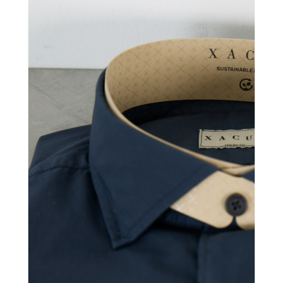 Dit petrolkleurige overhemd van Xacus combineert eigentijdse stijl met klassiek vakmanschap. Het 100% katoen voelt zacht aan en ademt prettig, terwijl de moderne snit zorgt voor een flatterende pasvorm. De verstelbare manchetten en klassieke kraag geven het shirt een verfijnde uitstraling. De contrasterende crèmekleurige details aan kraag en manchetten voegen een subtiele elegantie toe.
