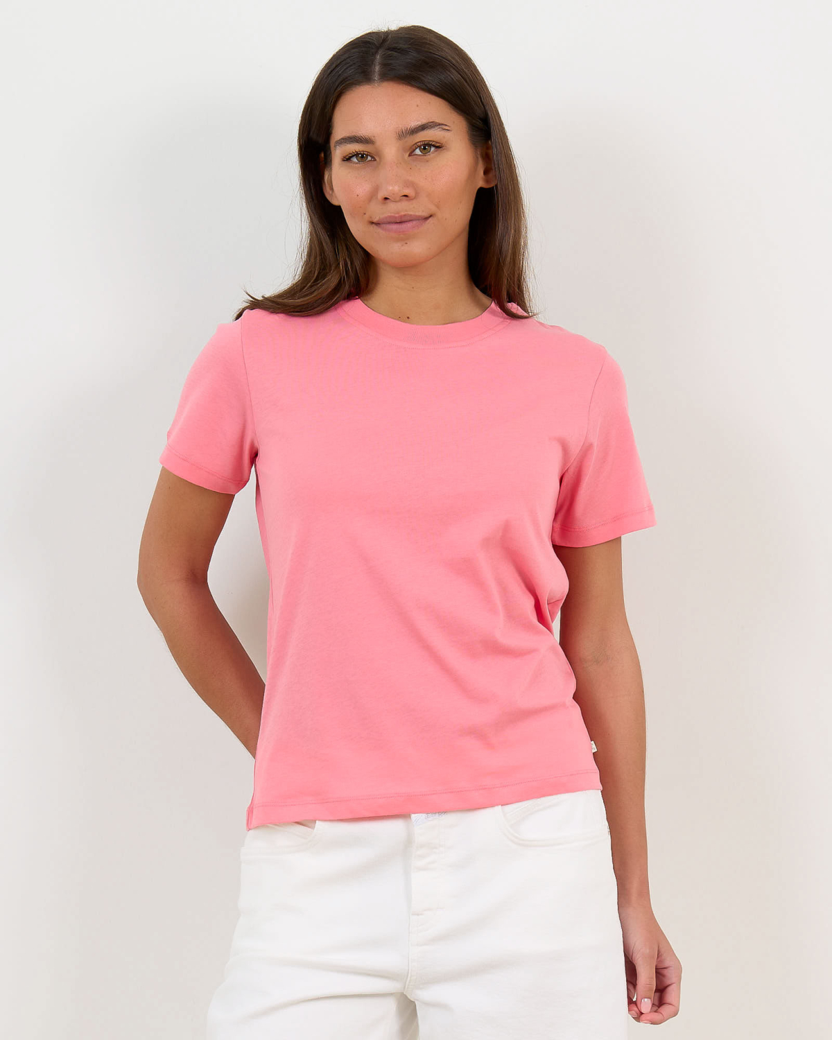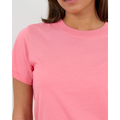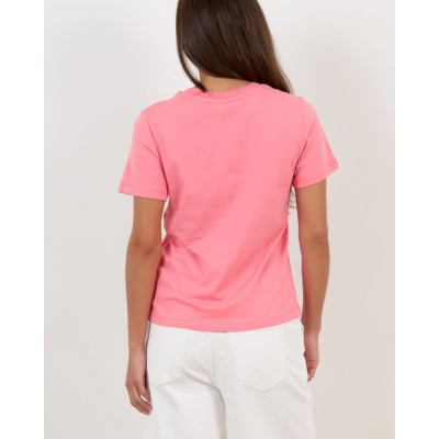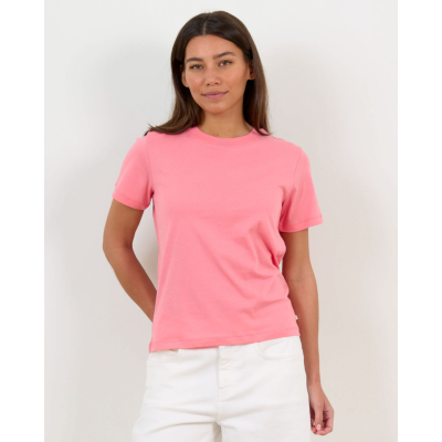 Dit roze t-shirt van 100% biologisch katoen combineert comfort met stijl. De ronde hals en korte mouwen zorgen voor een klassieke uitstraling, terwijl de regular fit perfecte bewegingsvrijheid biedt. Het zachte katoenen materiaal voelt aangenaam op de huid en houdt zijn vorm bij het dragen.