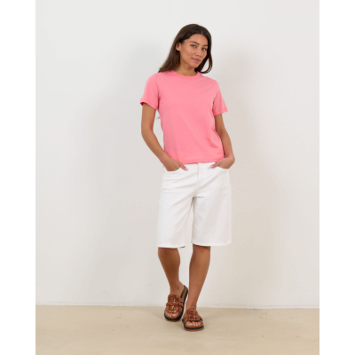Het roze biologisch katoenen t-shirt van Closed combineert perfect met een witte denim short voor een frisse zomerlook. Draag dit dames kleding item onder een lichte blazer voor een verfijnde casual stijl, of combineer het met een high waist jeans en sneakers voor een relaxte dag look.