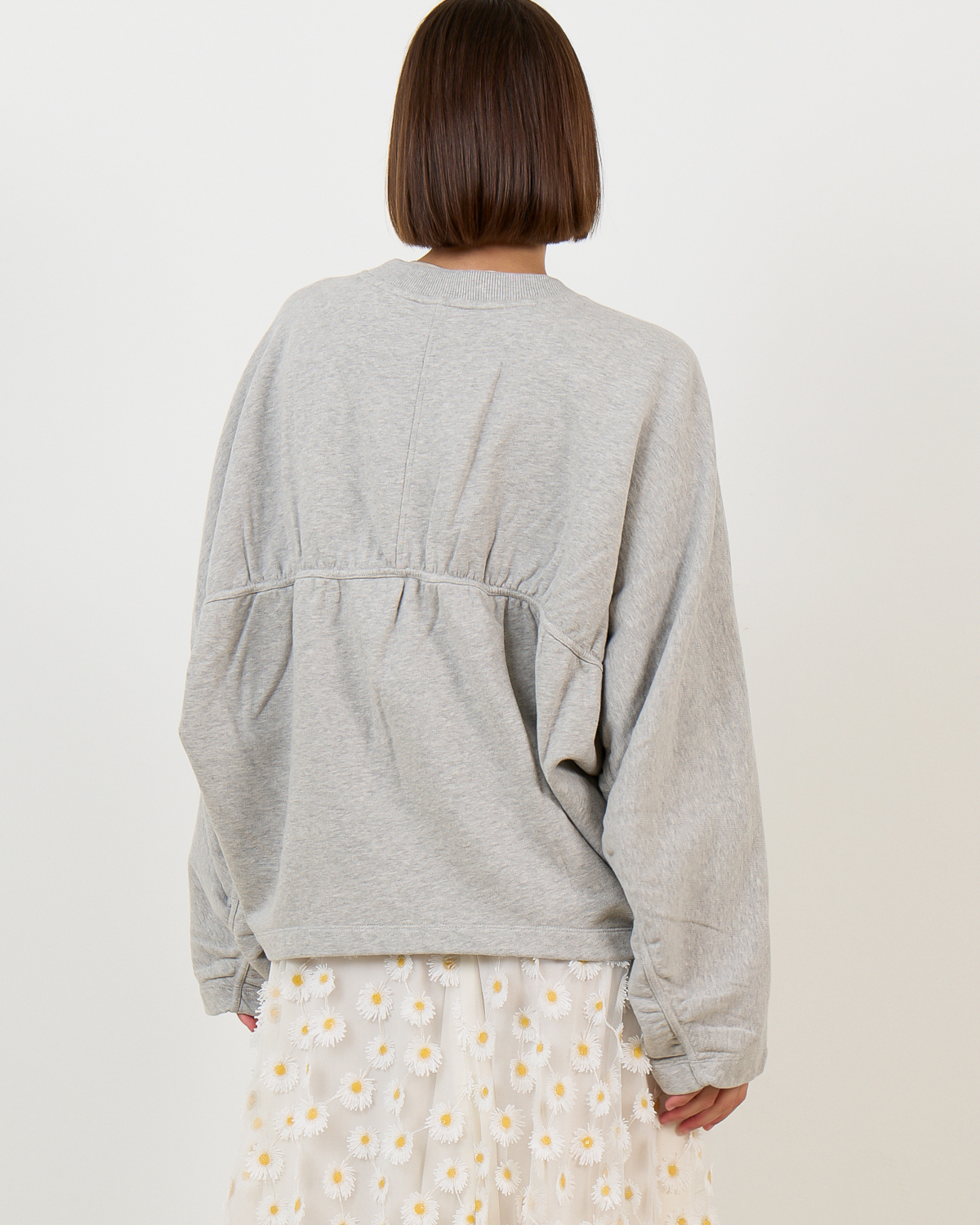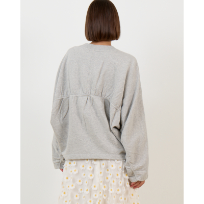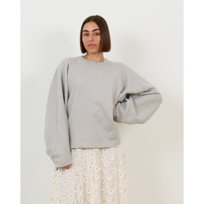 Deze grijze sweatshirt van 100% katoen combineert comfort met een eigentijdse twist. Het gathered detail aan de achterzijde creëert een speelse dimensie, terwijl de lange mouwen en ronde hals zorgen voor een klassieke uitstraling. De losvallende pasvorm in zachte lichtgrijze tint maakt dit een veelzijdig basisstuk.