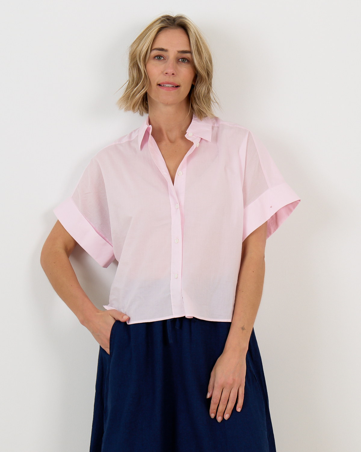 De Katoenen Korte Mouwen Blouse in Quartz Pink van Closed combineer je perfect met een donkere pantalon voor een chique zakelijke look of met een spijkerrok voor een casual weekend outfit. Voor dames kleding Closed staat bekend om veelzijdige stukken die je kunt stylen met zowel neutrale basics als opvallende accessoires voor een persoonlijke twist.
