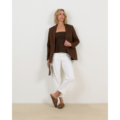 De bruine chocolate top van Closed laat zich prachtig combineren met witte broeken voor een frisse contrast. Draag het met een beige blazer voor een verfijnde look of kies voor denim voor een casual uitstraling. Voor avondelijke gelegenheden combineer je de top met een zwarte rok.