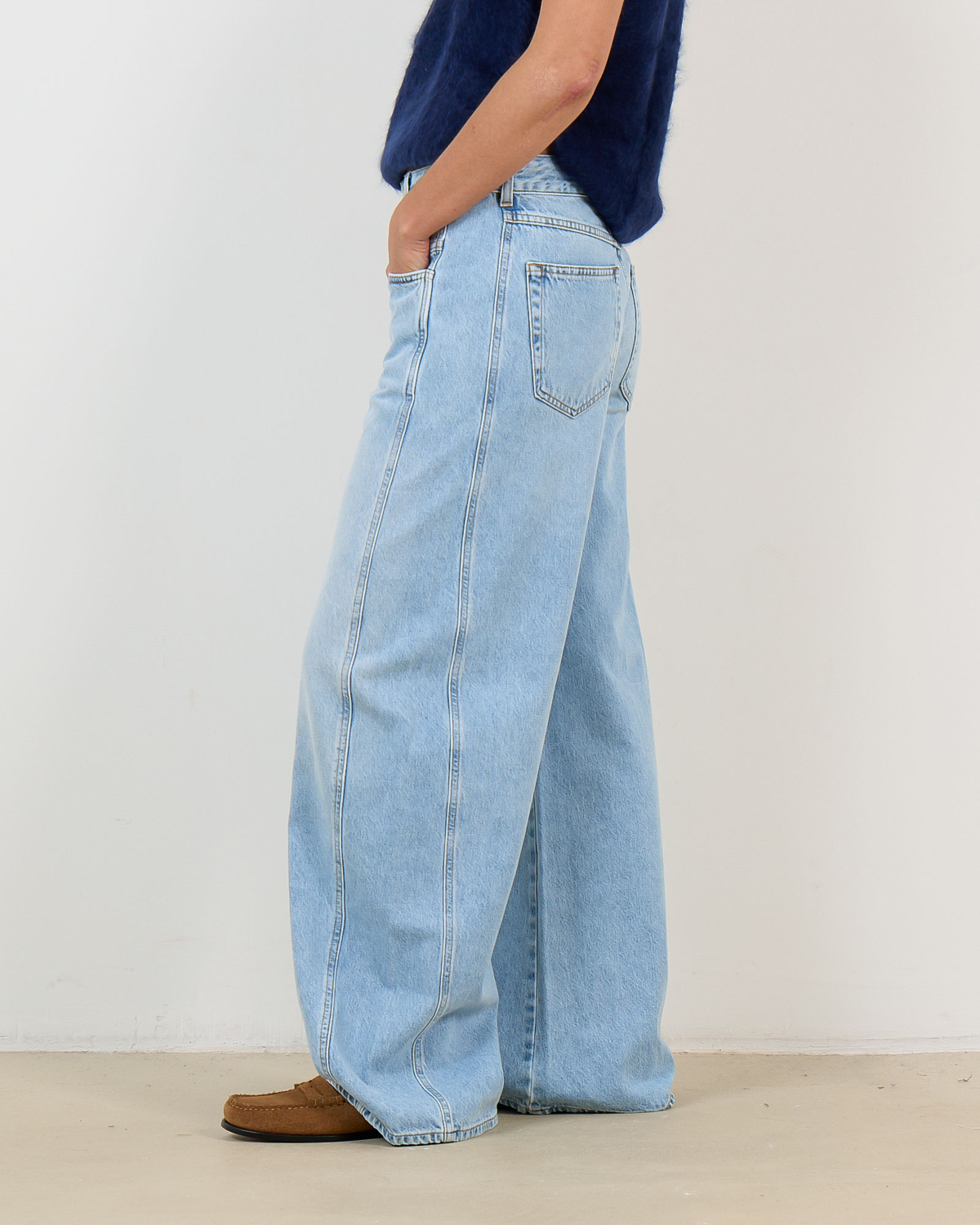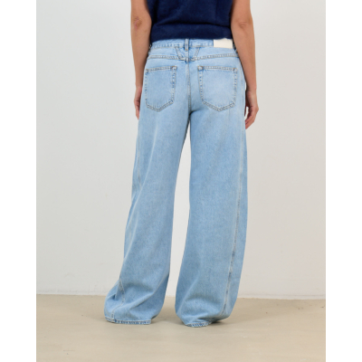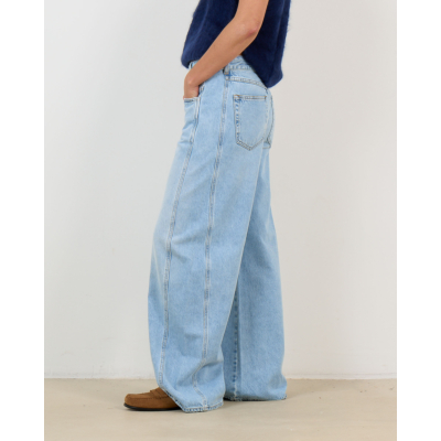 Deze lichtblauwe barrel jeans combineert comfort met een eigentijdse uitstraling. De regular fit zorgt voor een ontspannen pasvorm, terwijl de wijde pijpen een opvallend statement maken. Met klassieke vijfzakken indeling en knoopsluiting biedt deze jeans van 80% katoen en 20% gerecycled katoen zowel stijl als functionaliteit.