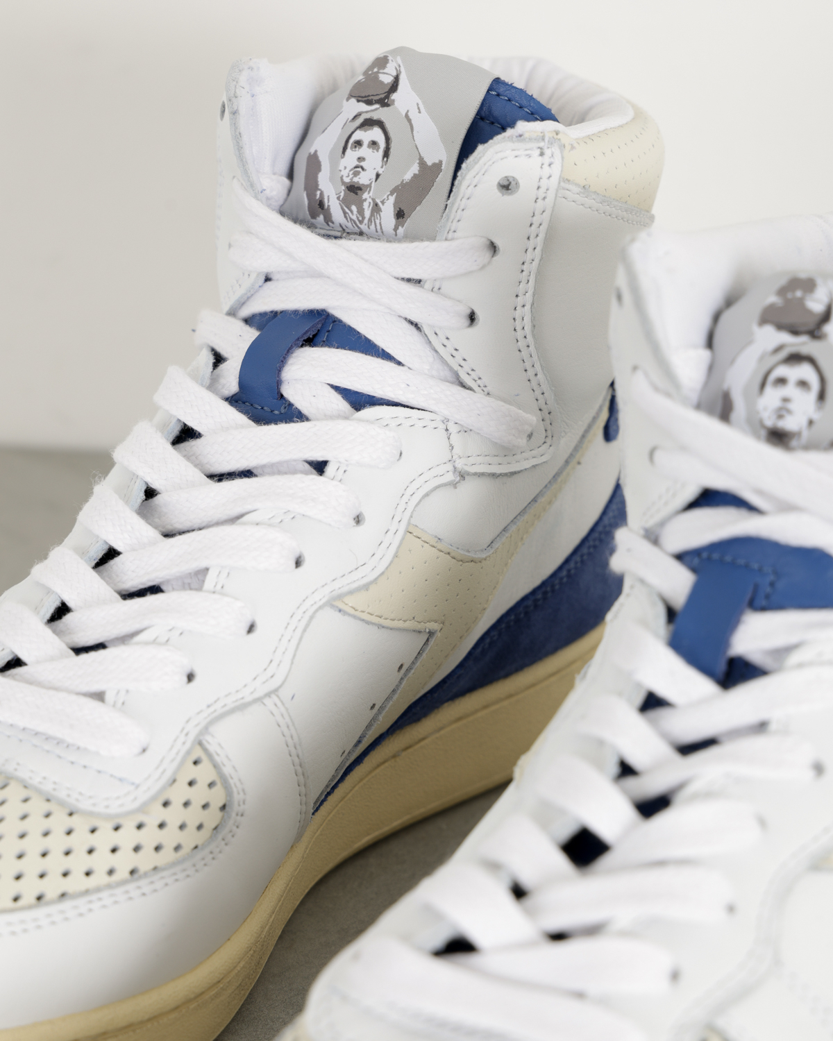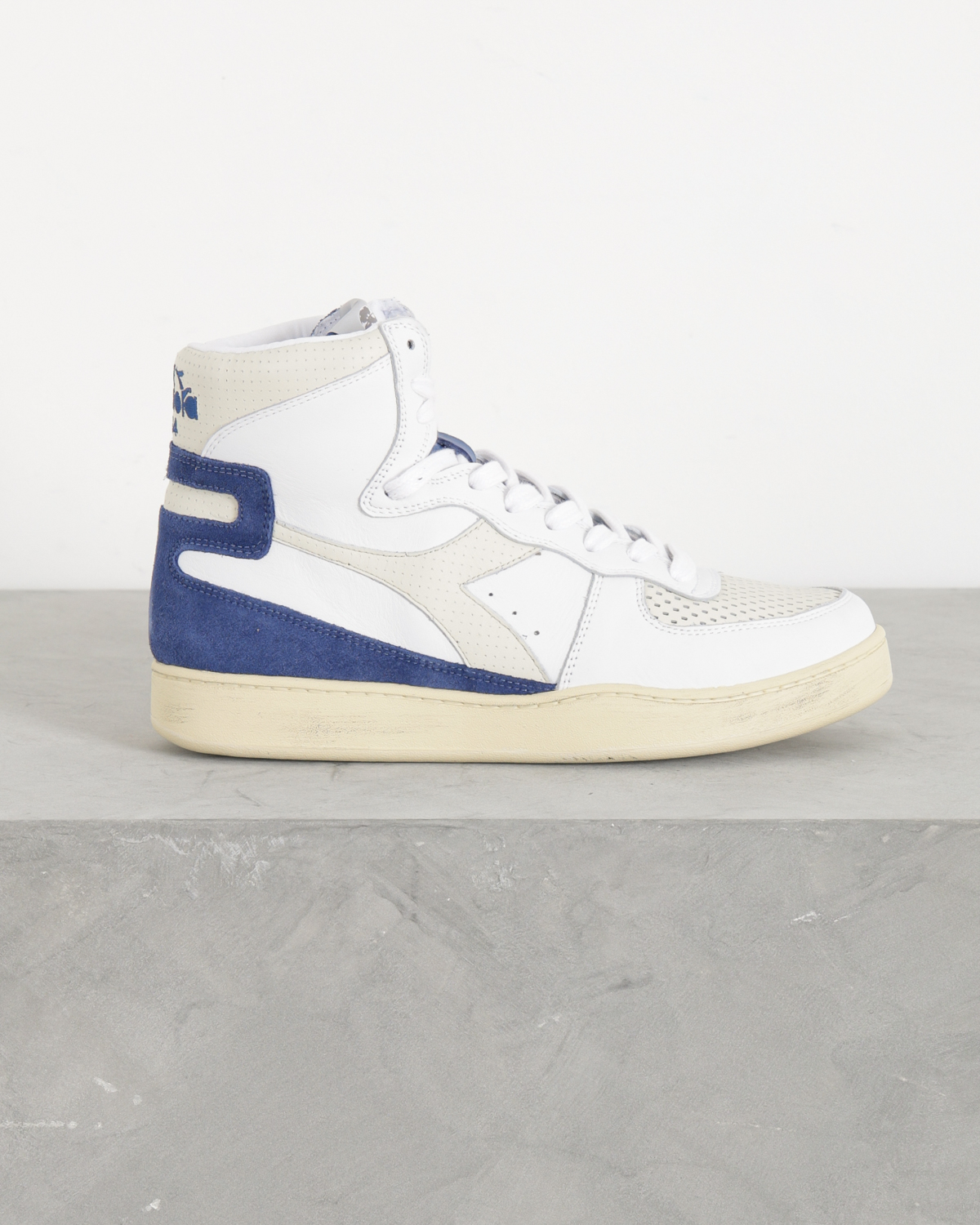 De Mi Basket Punched Italia Sneakers van Diadora is uitgevoerd in wit volnerfleer met accenten van suède en behandeld met een stonewash behandeling. Het bovenwerk van de high-top sneakers is geïnspireerd op het iconische patroon van basketbalshirts. De sneaker is compleet met het Dino Meneghin op de tong. Verder hebben de sneakers een rubberen zool met used-uitstraling.