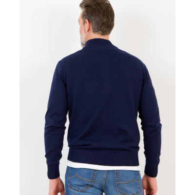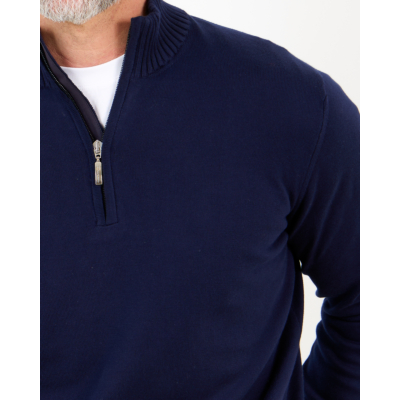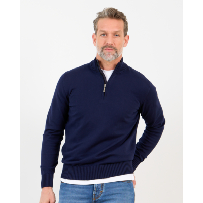 Deze marineblauwe pullover van Doriani Cashmere kenmerkt zich door zijn verfijnde 100% katoenen samenstelling en regular fit snit. De staande geribbelde kraag en kwartlange rits geven karakter aan dit klassieke heren kledingstuk. De geribbelde afwerking aan kraag, mouwen en zoom zorgt voor een gestructureerde uitstraling. Draag deze tijdloze pullover over een wit overhemd met pantalon voor zakelijke elegantie, of combineer met jeans voor een ontspannen weekend look.
