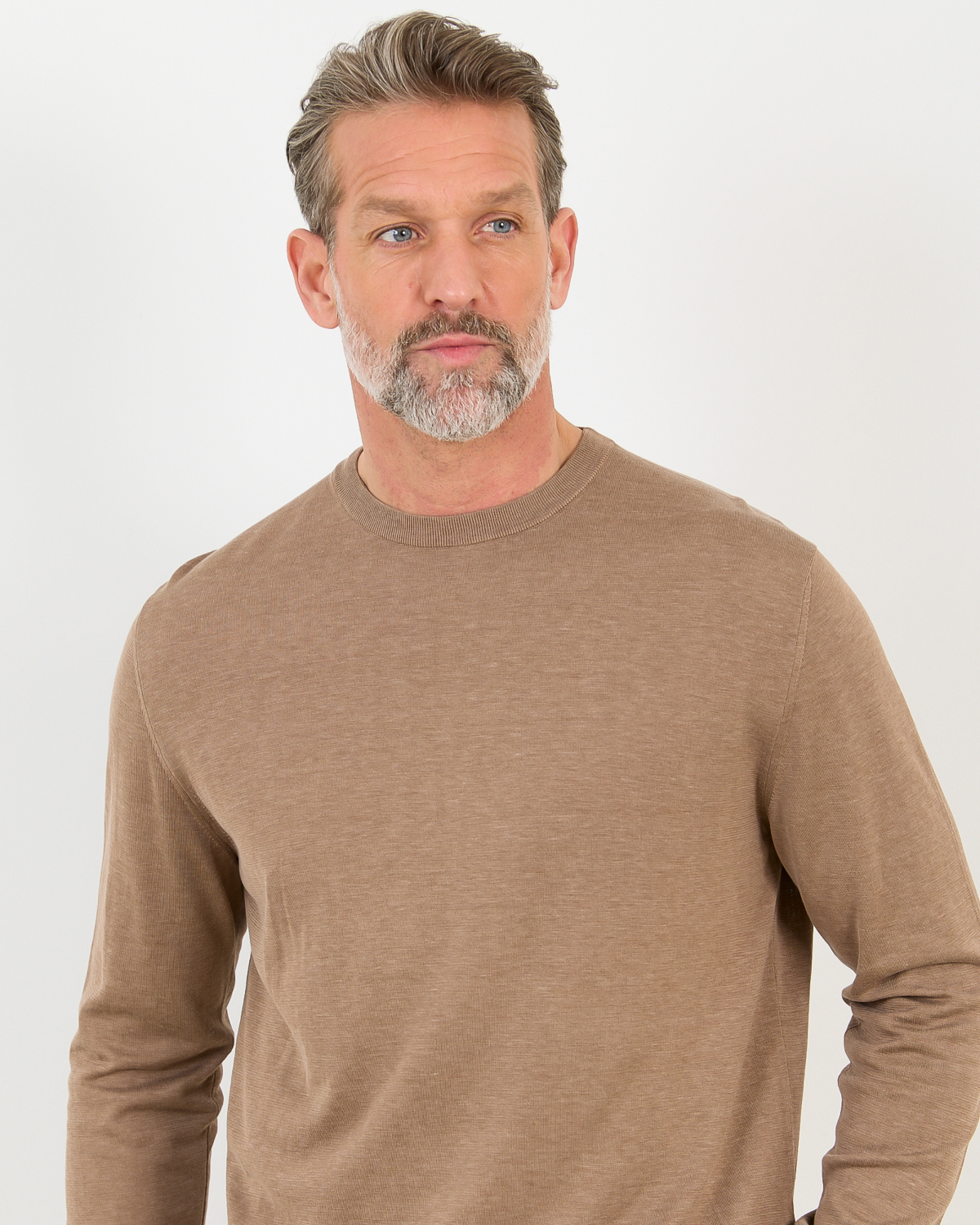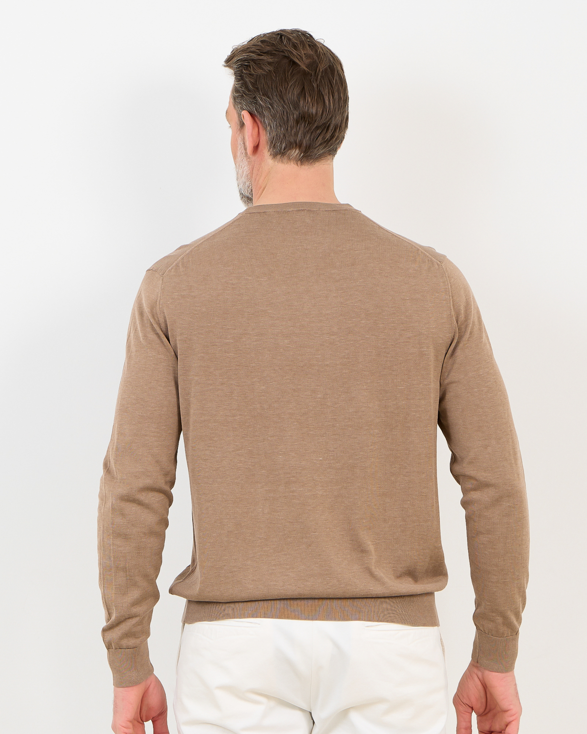 Deze verfijnde taupe pullover van Doriani Cashmere combineert luxueuze materialen met tijdloze elegantie. De zijde-katoen blend (62% zijde, 38% katoen) voelt zacht aan en heeft een natuurlijke glans. De ronde hals en lange mouwen zorgen voor een klassieke uitstraling, terwijl de regular fit comfort biedt. De subtiele taupe tint geeft het kledingstuk een warme, verfijnde uitstraling.
