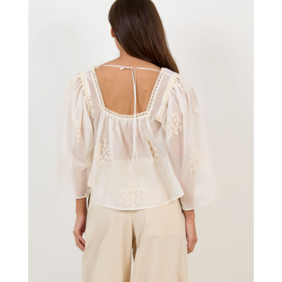 De Ismara Embroidered Babydoll Blouse Off White van Drykorn combineer je prachtig met een high waist broek in neutrale tinten voor een chique dagoutfit. Voor een zomerse look draag je deze dames kleding Drykorn blouse met een witte wide leg broek en gouden accessoires. Creëer contrast door de blouse te stylen met een donkere pantalon en minimalistische sieraden.