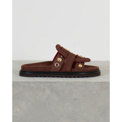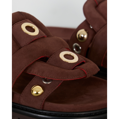 Deze bruine suede sandalen van Morobé combineren comfort met een stoere uitstraling. Het zachte suede materiaal zorgt voor een luxe touch, terwijl de goudkleurige en zilverkleurige rivets een eigentijdse twist geven. De verstelbare bandjes met gespsluiting zorgen voor een perfecte pasvorm. De dikke zool met profiel biedt extra grip en comfort bij elke stap.