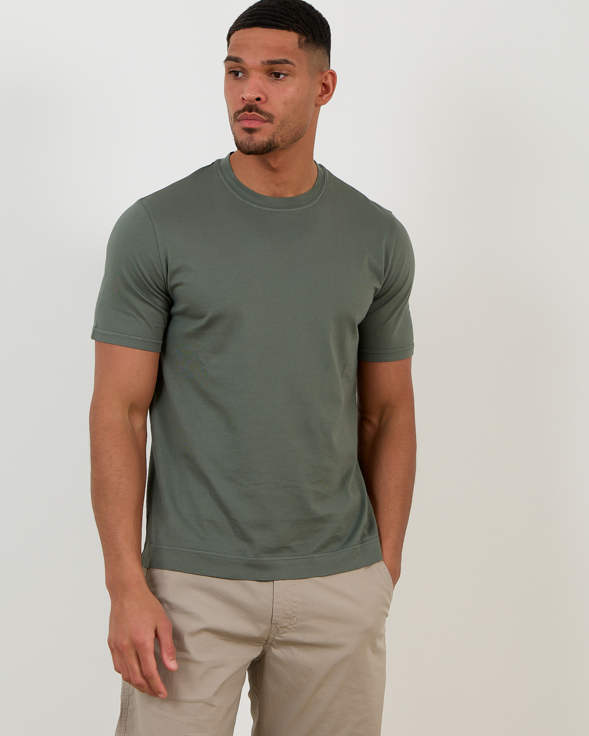 Dit groene jersey t-shirt van Fedeli combineert tijdloze stijl met hedendaags comfort. Het 100% katoenen jersey voelt zacht aan en beweegt soepel mee door de dag. De regular fit zorgt voor een comfortabele pasvorm, terwijl de ronde hals en korte mouwen klassieke elegantie uitstralen. De verfijnde groene kleur geeft het shirt een eigentijdse uitstraling.