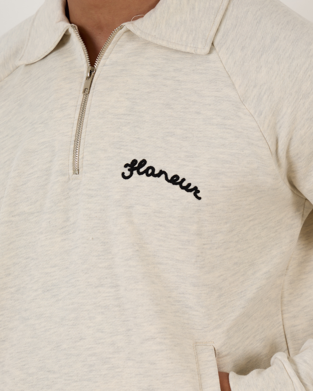 De Raglan Half Zip sweater van Flâneur komt in het grijs en is gemaakt van 100% katoen. De relaxed-fit stijl is voorzien van raglan mouwen, steekzakken en ribboorden. Aan de voorkant is de sweater voorzien van een kraag met rits tot halverwege en een geborduurd logo.