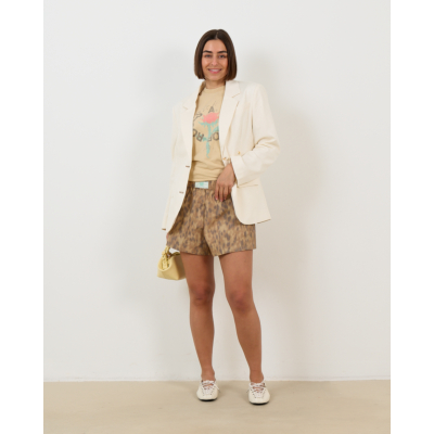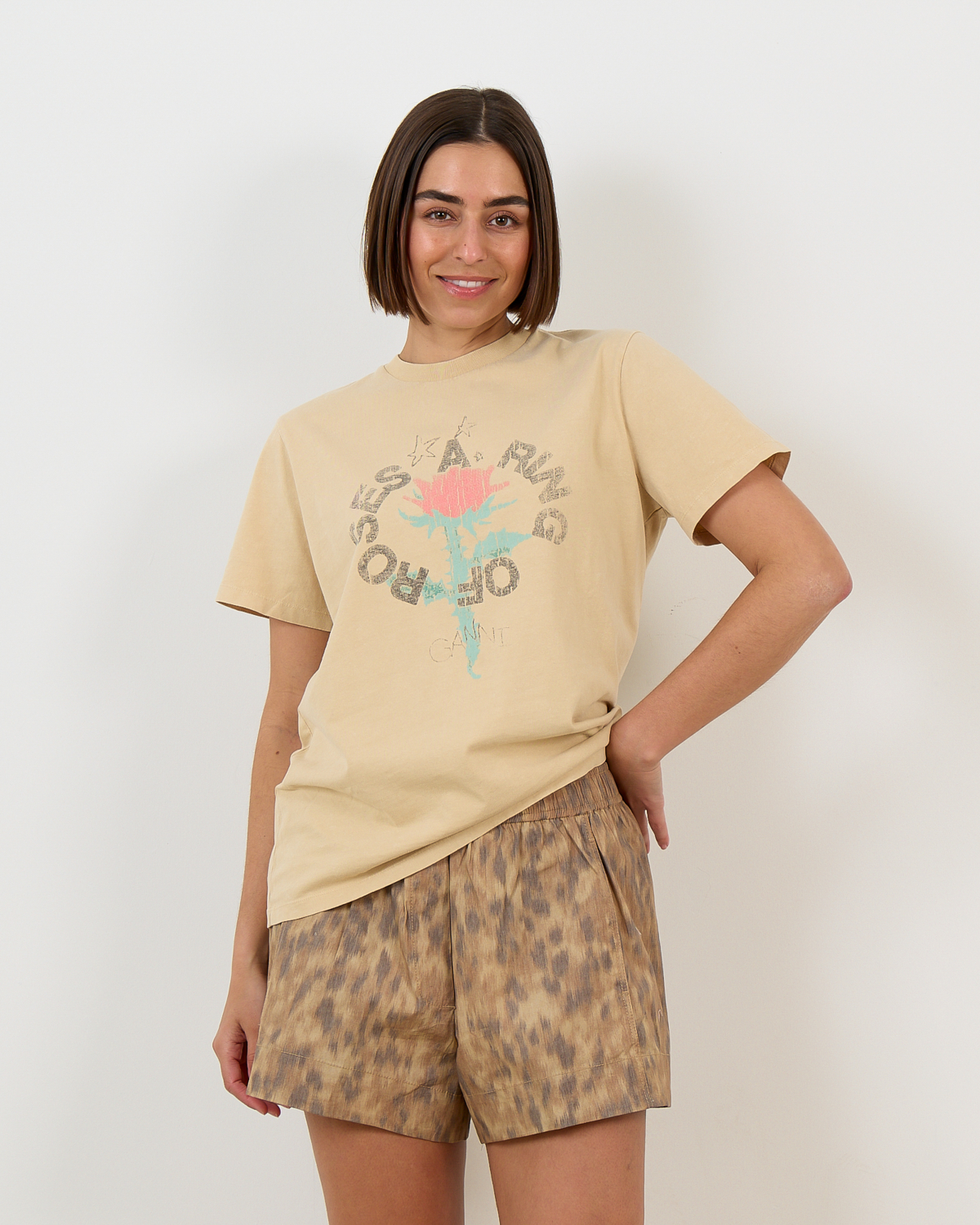 Dit Safari T-Shirt met Roos Geel van Ganni combineert uitstekend met een neutrale blazer voor een gebalanceerde look. Draag het bij een donkere broek of rok voor contrast, of kies voor denim om de speelse print te benadrukken. Het shirt vormt een trendy basis onder een gebreid vest of cardigan. Voor een complete dames kleding Ganni look combineer je het met een matching accessoire in vergelijkbare kleurtinten.