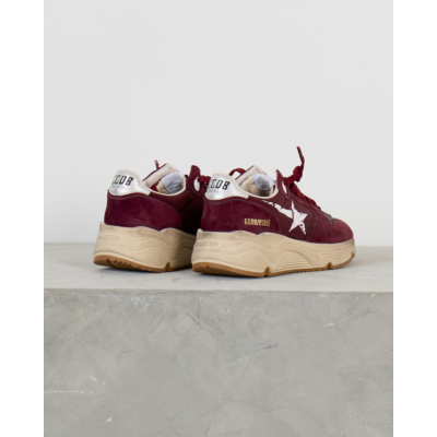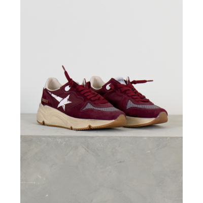 Deze bordeauxrode sneakers combineer je perfect met een effen zwarte broek voor een stijlvolle casual look of met een denim jeans voor een ontspannen weekend outfit. De Running Sole Sneakers Bordeaux van Golden Goose vormt een elegante basis onder een midi rok met oversized blazer voor een verfijnde sportieve twist.