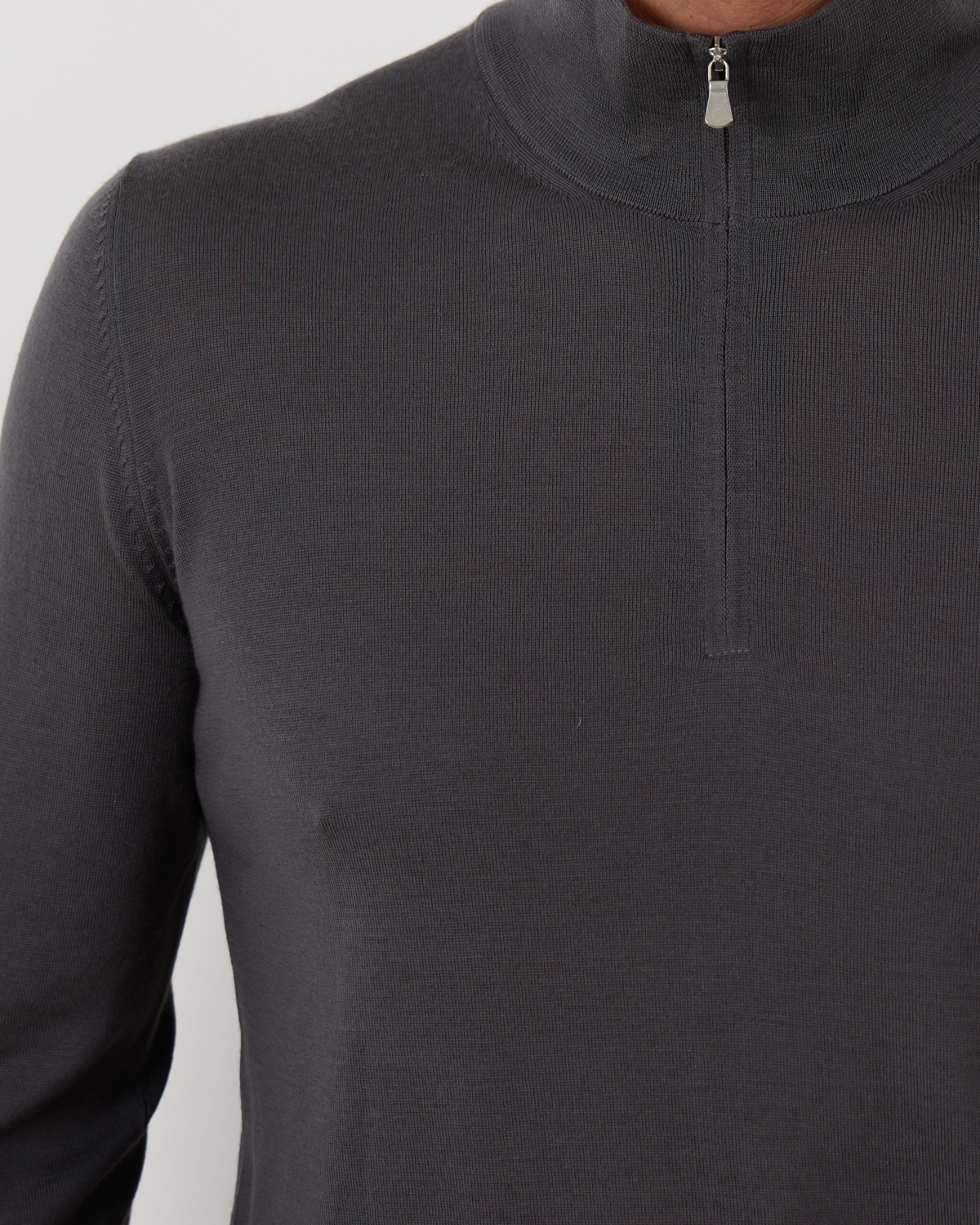 Deze Pullover van Gran Sasso voegt een luxueuze verfijning toe aan jouw looks. De pullover is vervaardigd uit lichtgewicht wol en komt in de kleur antra. Het biedt een aangesloten pasvorm en is afgewerkt met een halve ritssluiting.