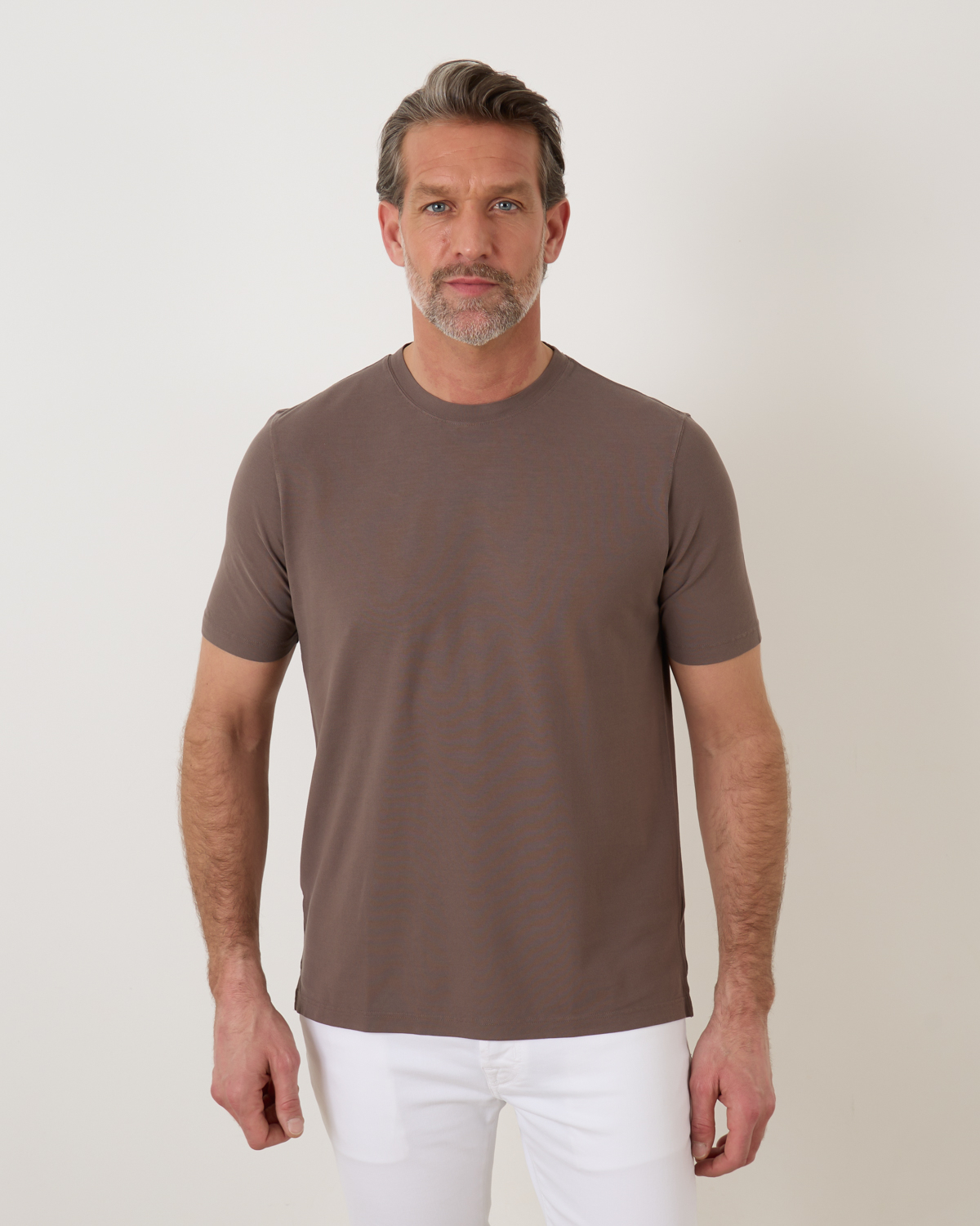 Dit Gran Sasso T-shirt is vervaardigd uit licht katoen en uitgevoerd in een stijlvolle taupe kleur. Met zijn regular fit, ronde hals en korte mouwen biedt het een perfecte balans tussen casual en verfijning.