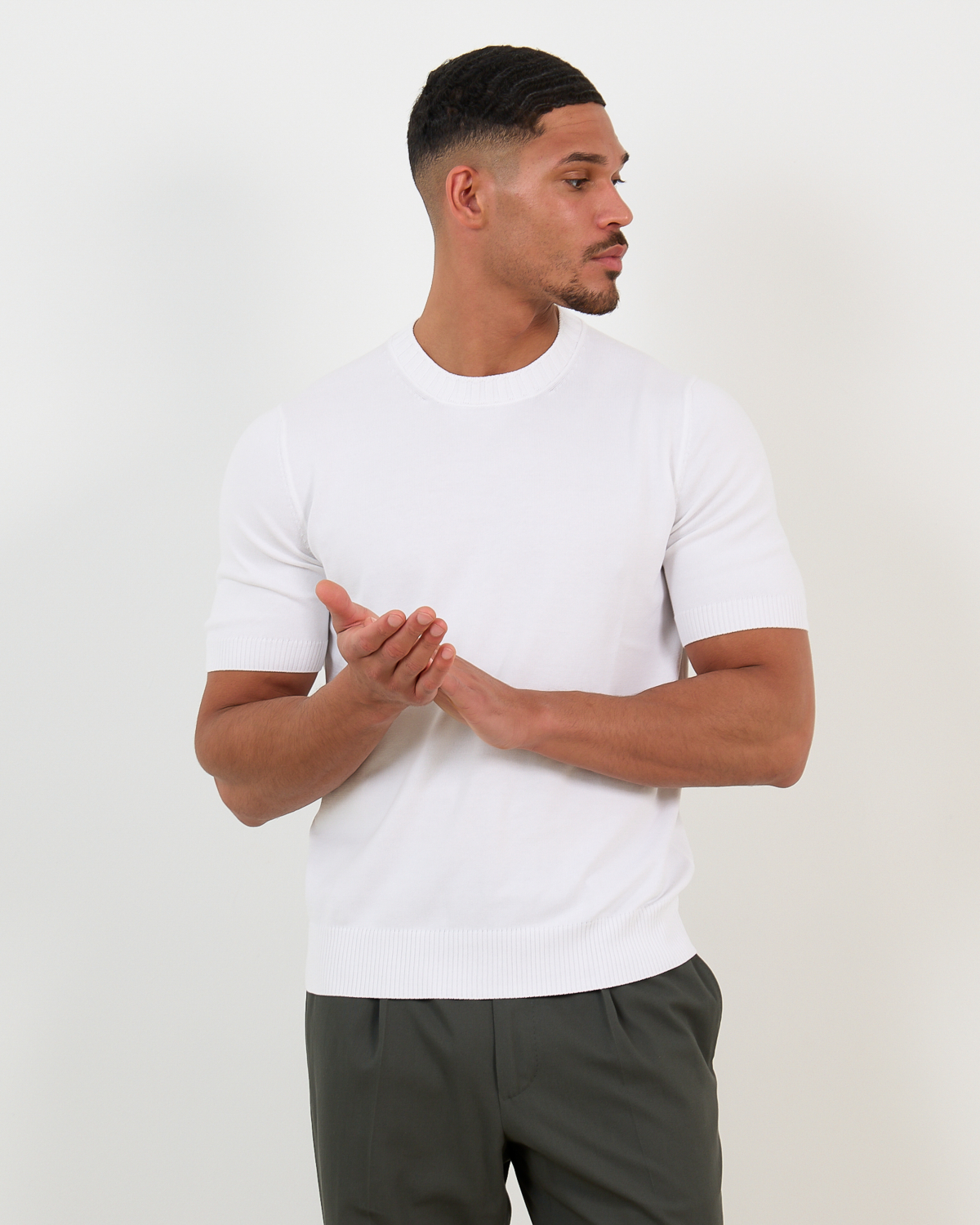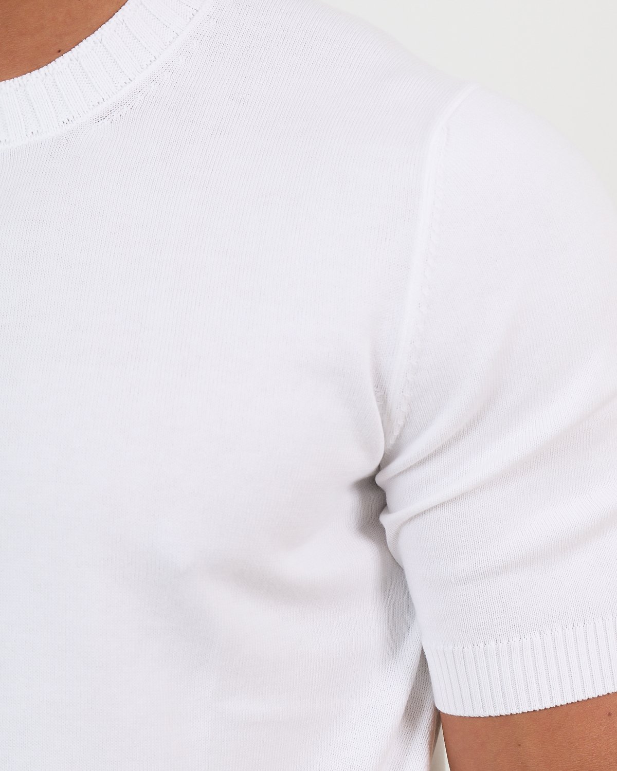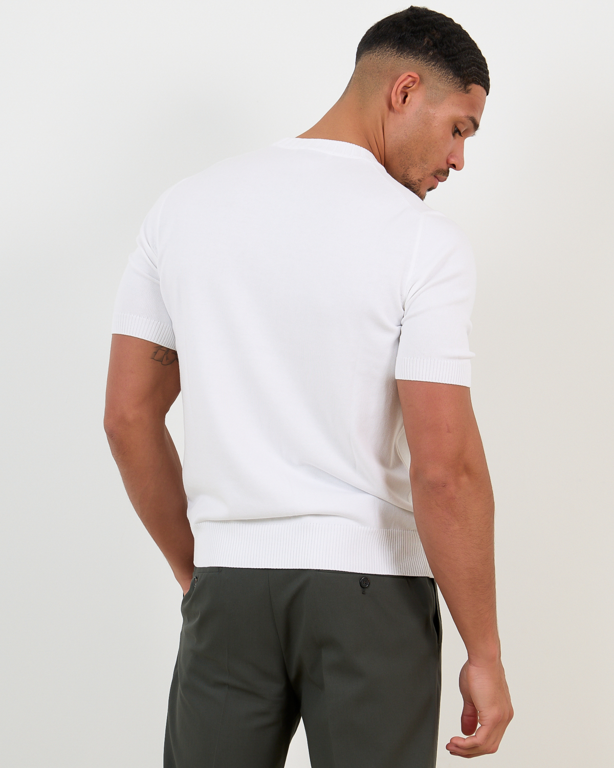 Combineer deze witte pullover met een donkere chino voor een elegante casual look, of draag hem onder een blazer voor een verfijnde zakelijke outfit. Ook perfect onder een overhemd als subtiele laag.