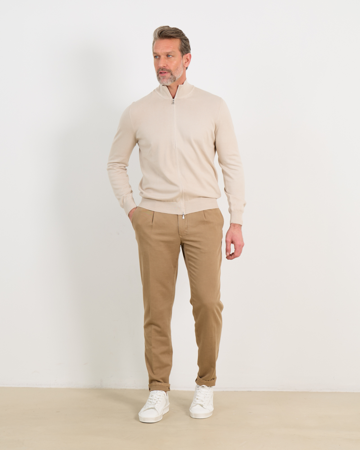 Combineer dit vest met een wit overhemd en donkere pantalon voor een zakelijke uitstraling, of draag het casual over een polo met een chino. De neutrale beige tint maakt het een perfecte match bij zowel donkere als lichte kleuren in je outfit.