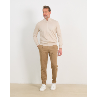 Deze beige vestje van Gran Sasso toont klassieke elegantie in een moderne uitvoering. Het fijngebreide vest heeft een volledige ritsvoorsluiting en een opstaande kraag die voor een verzorgde look zorgt. De ribgebreide details aan de kraag, mouwen en zoom geven het vest een verfijnde structuur. De zachte beige kleur straalt rust en veelzijdigheid uit.