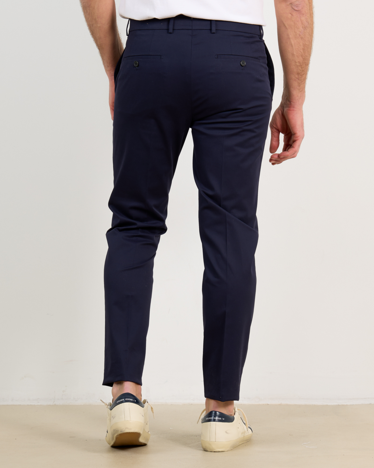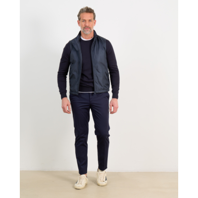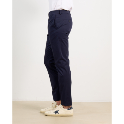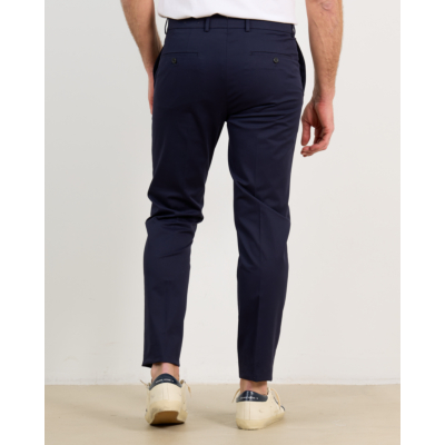 Deze marineblauwe casual pantalon van Incotex combineert eigentijdse verfijning met klassiek comfort. De slanke snit zorgt voor een moderne uitstraling, terwijl de zachte stof soepel valt en alle bewegingsvrijheid biedt. De pantalon heeft een nette tailleband met riemlussen, knoop- en ritssluiting aan de voorkant. Aan de achterzijde bevinden zich twee paspelzakken met knoopdetails, wat zorgt voor een verzorgde afwerking. De enkellange pijpen maken dit een veelzijdig item voor zowel zakelijke als casual momenten.