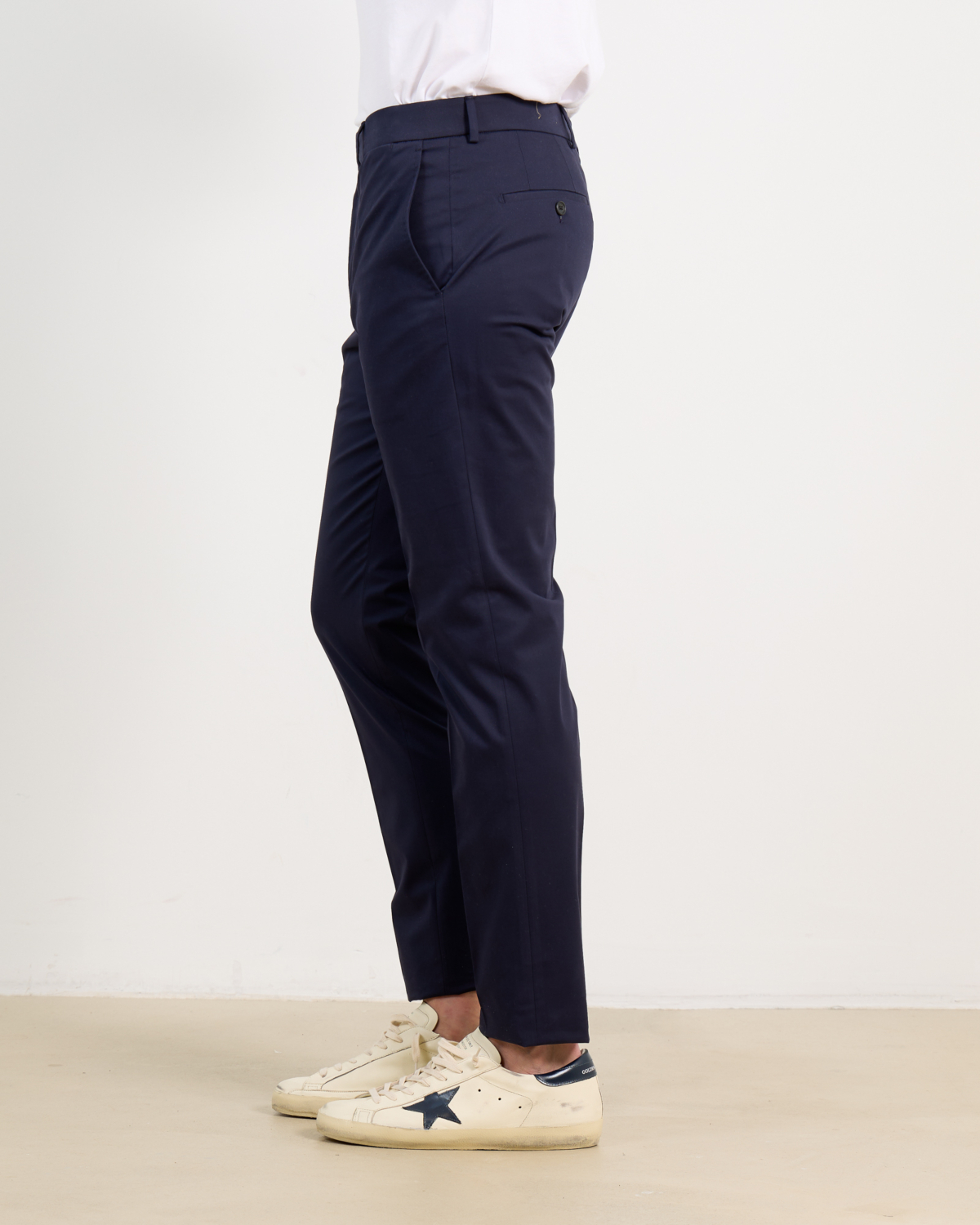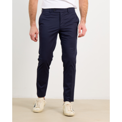 Combineer deze marineblauwe pantalon met een wit overhemd en blazer voor een zakelijke look, of draag hem met een trui en sneakers voor een ontspannen stijl. Ook perfect met een polo en instappers voor een smart casual outfit.