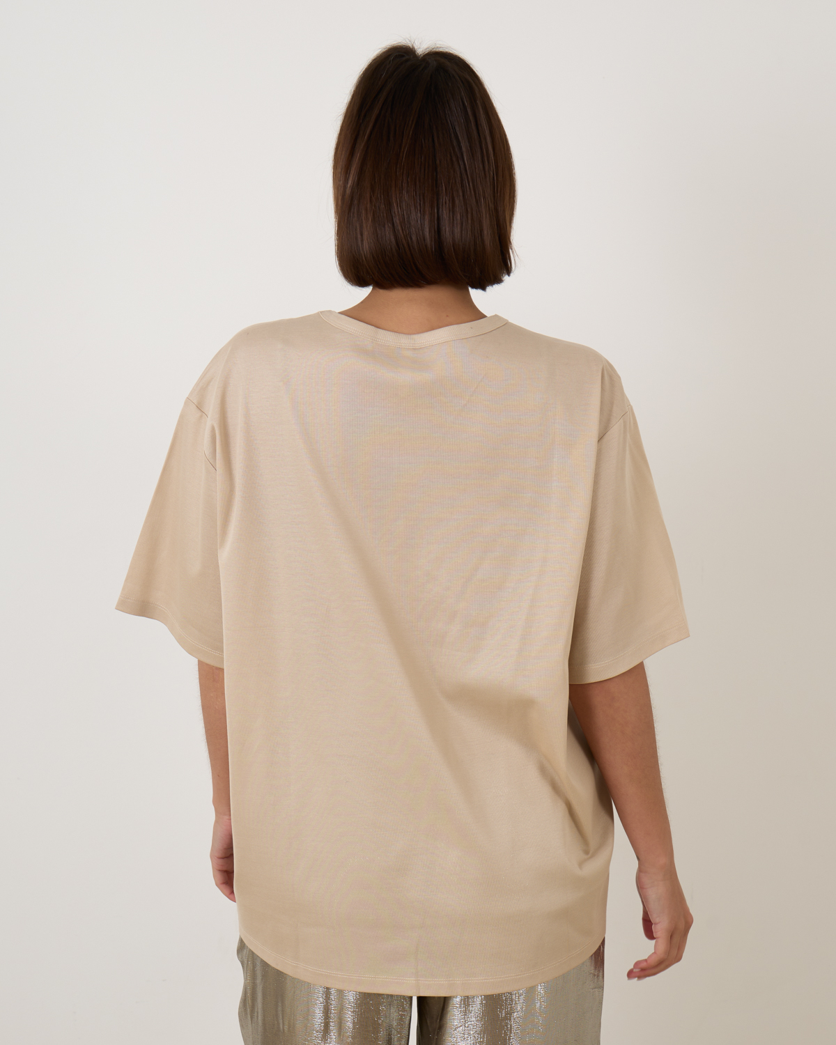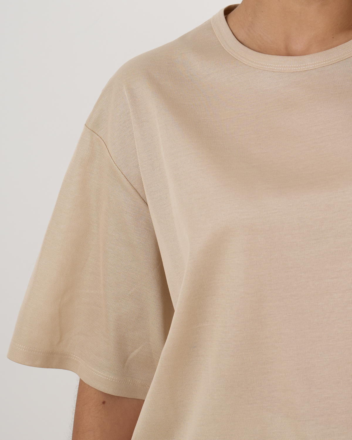 Het Lotus T-shirt is gemaakt vang emerceriseerd katoen jersey in het beige. Het luxueze T-shirt heeft een oversized pasvorm en is voorzien van een ronde hals met dubbele stiksels.
