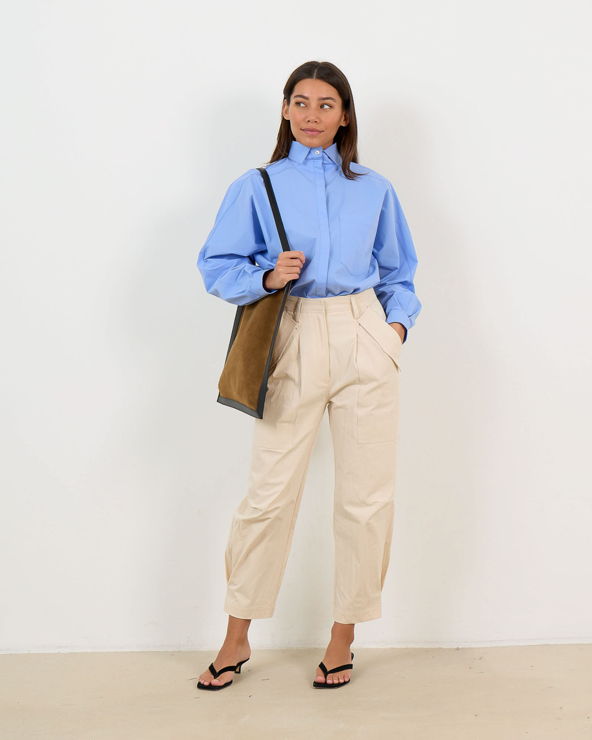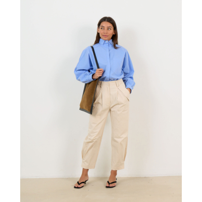 Combineer deze Iro blouse met een tailored pantalon voor een professionele uitstraling of draag hem bij een wijde broek voor een casual elegante look. De Nylia Sailor Collar Blouse Azur Blue van dames kleding Iro vormt een stijlvolle basis voor zowel zakelijke als weekend outfits.