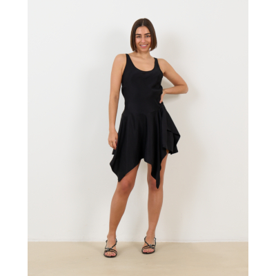 Deze zwarte mini jurk van Iro valt op door zijn speelse asymmetrische zoom met decoratieve ruffles. Het mouwloze ontwerp heeft brede schouderbanden en een ronde halslijn. Vervaardigd uit 100% viscose biedt de jurk een soepele draag en regular fit. De asymmetrische lijnen geven beweging aan het design, terwijl de effen zwarte kleur voor veelzijdigheid zorgt.