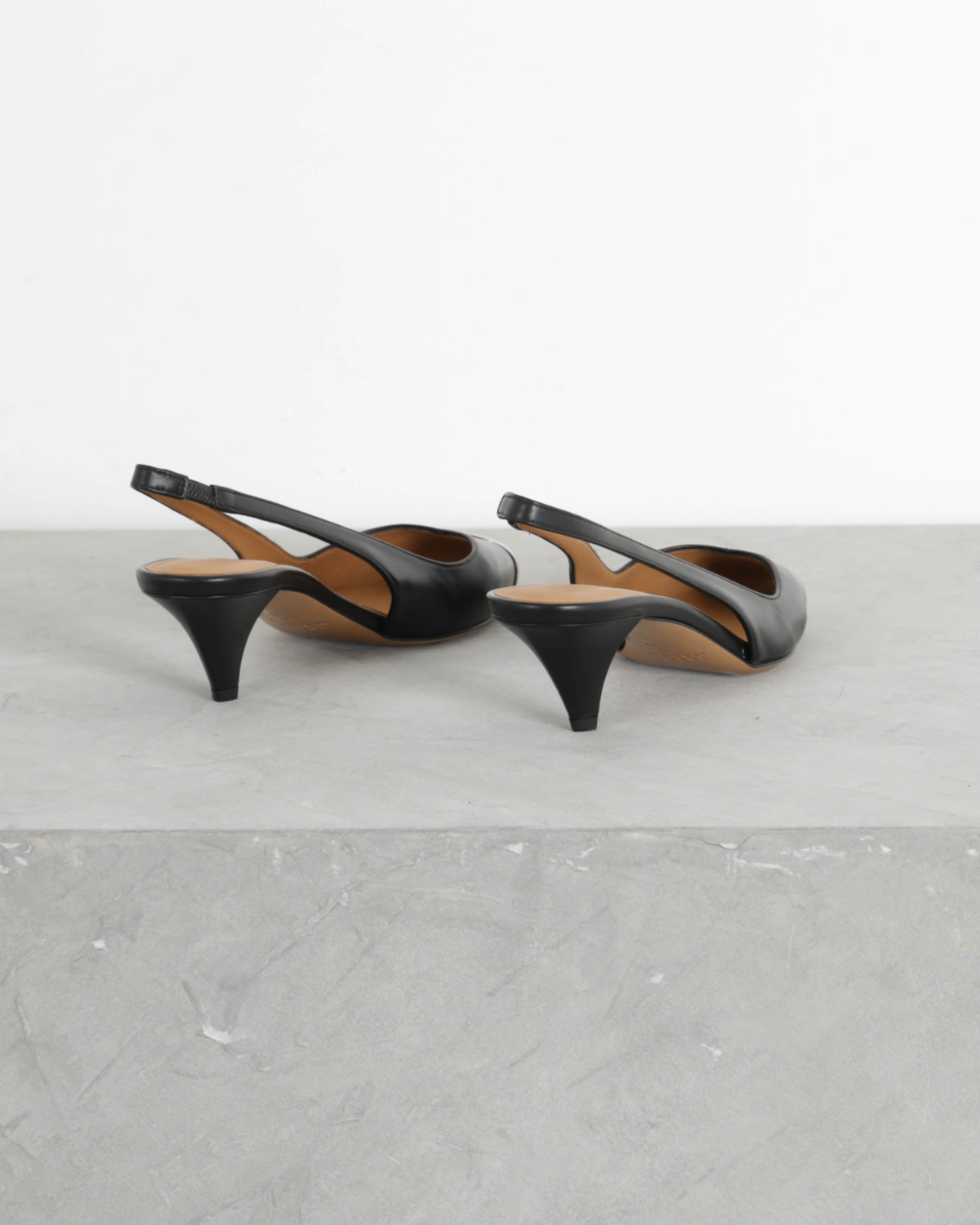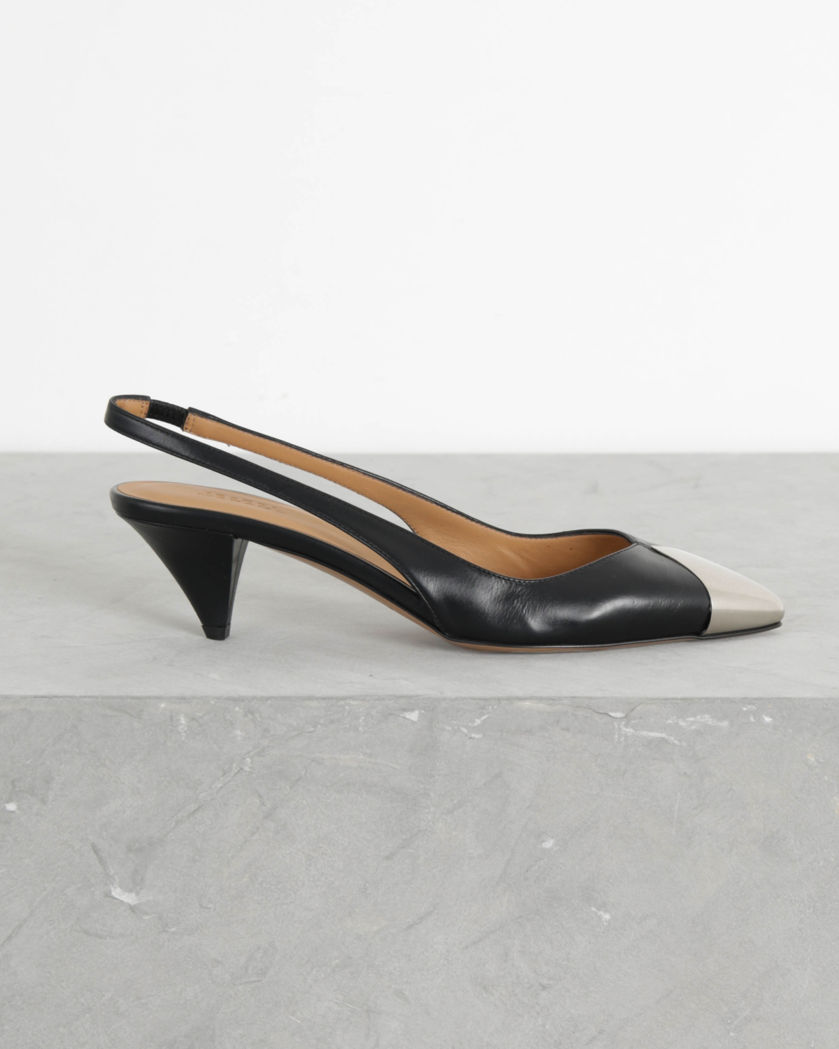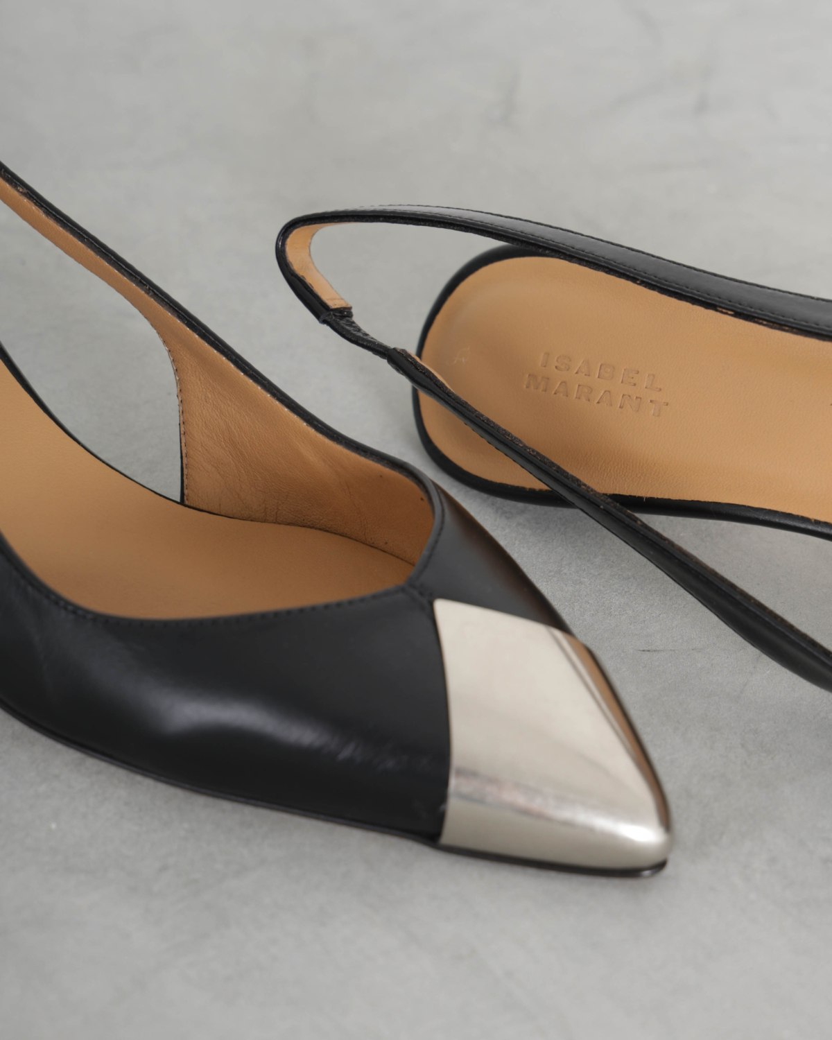 De Elina Pump van Isabel Marant geeft een stijlvolle en vrouwelijke touch aan iedere look. De zwarte pump is vervaardigd van leer en heeft aan metalen punt neus. De pointy heel van 5cm en het bandje om de hiel geven de pump een slank silhouet.