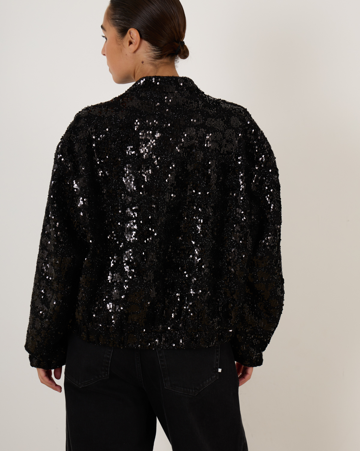 De omber Jacket van IRO is een glamoureus statementstuk dat elke outfit laat schitteren. Dit jasje is bedekt met glinsterende pailletten. De lange mouwen en subtiele structuur maken het een veelzijdig item, perfect voor feestelijke gelegenheden of om een casual look een luxe touch te geven. Een absolute must-have voor een sprankelende garderobe.