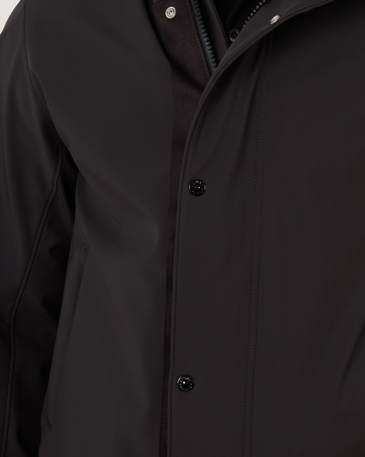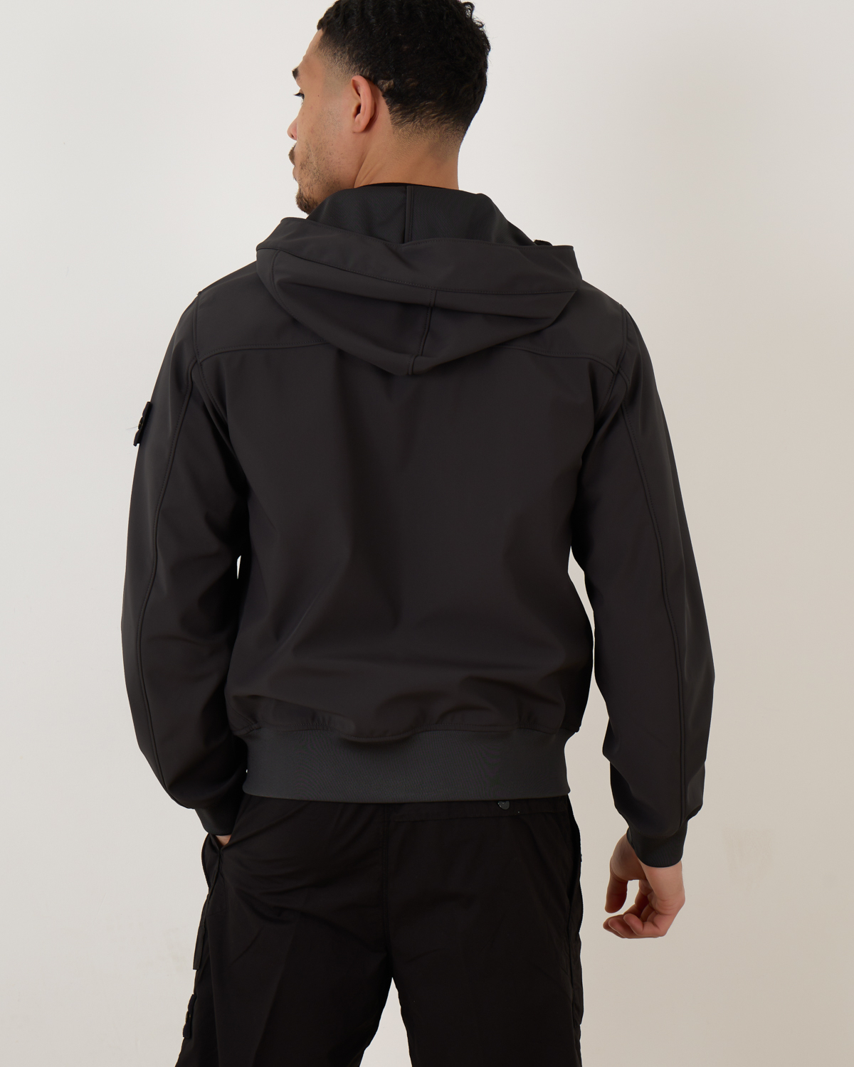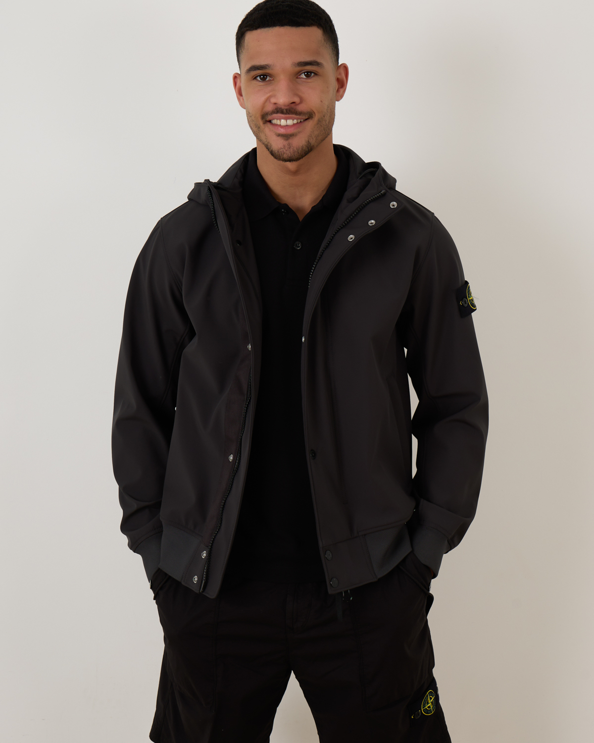 Soft Shell Jack van Stone Island in de kleur V0065 Charcoal. Het jack is gemaakt van stretchcanvas wat is gelamineerd op een ademend, wind- en waterafstotend vermogen. Een functioneel en flexibel materiaal wat veel draagcomfort biedt. Het jack met capuchon is voorzien van twee steekzakken, een verborgen tweeweg ritsluiting, een elastische zoom en twee steekzakken met rits sluiting. Verder heeft het jack een Stone Island-badge op de linkermouw.