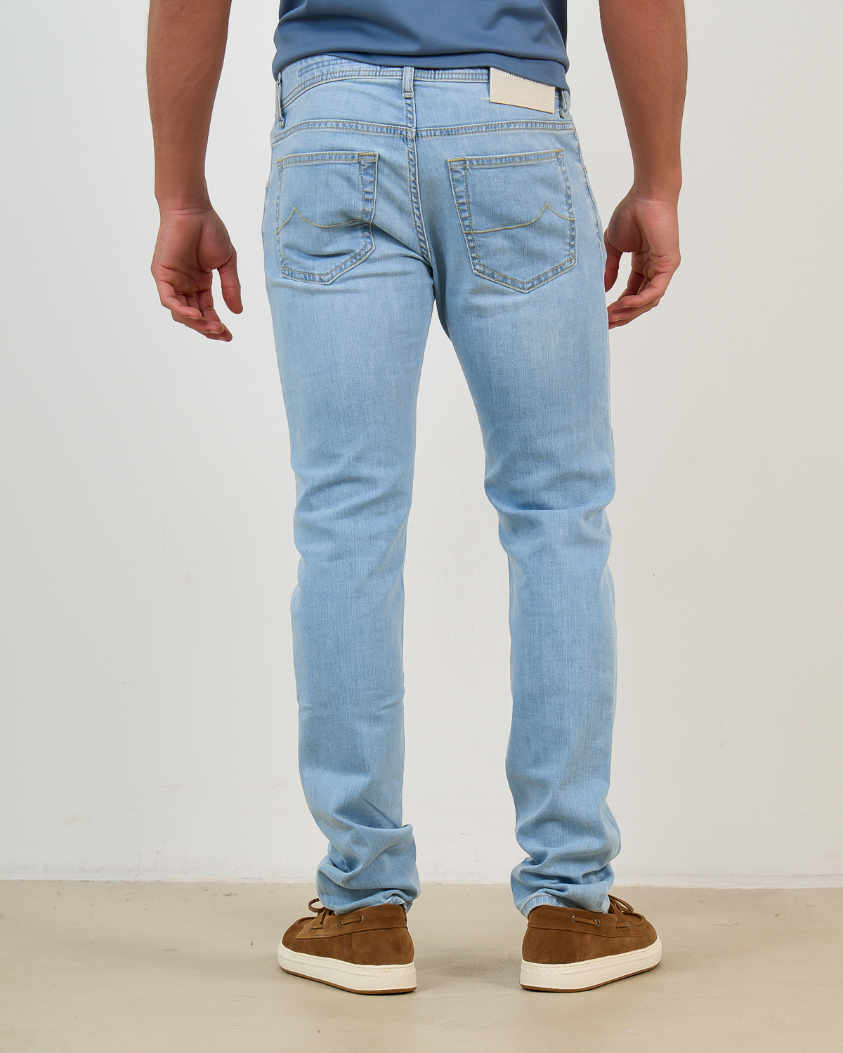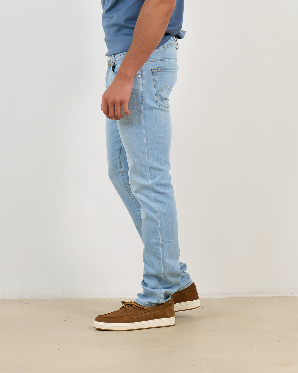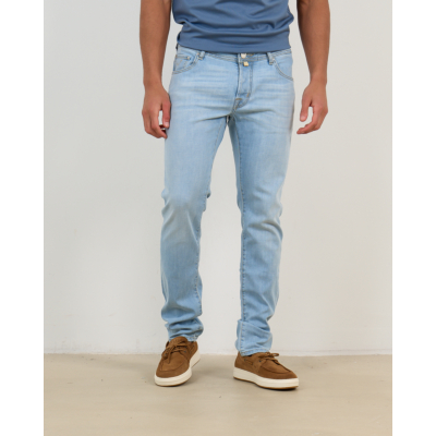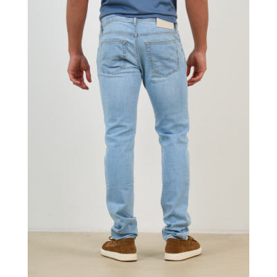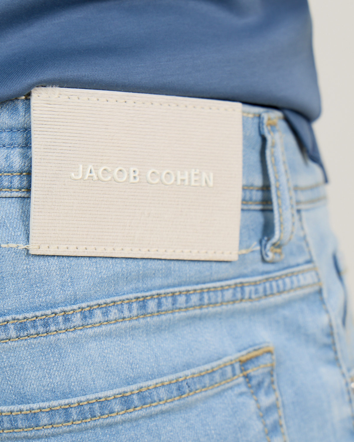 Deze lichtblauwe slim fit jeans van Jacob Cohën combineert Italiaans vakmanschap met eigentijds comfort. De zachte katoenmix van 80% katoen, 13% modal en 5% zijde voelt aangenaam aan en beweegt soepel mee. De vijf-zaksindeling biedt praktische bergruimte, terwijl de klassieke jeansdetails zoals siernaden en knoopsluiting zorgen voor een authentieke uitstraling. De slim fit snit zorgt voor een moderne, getailleerde pasvorm die elegant oogt. Combineer deze veelzijdige jeans met een wit overhemd voor een casual-chique look of draag hem met een gebreide trui voor relaxte weekenddagen.