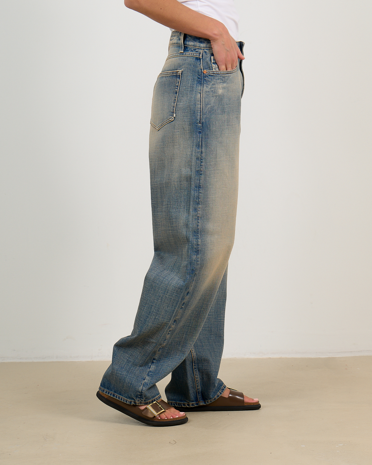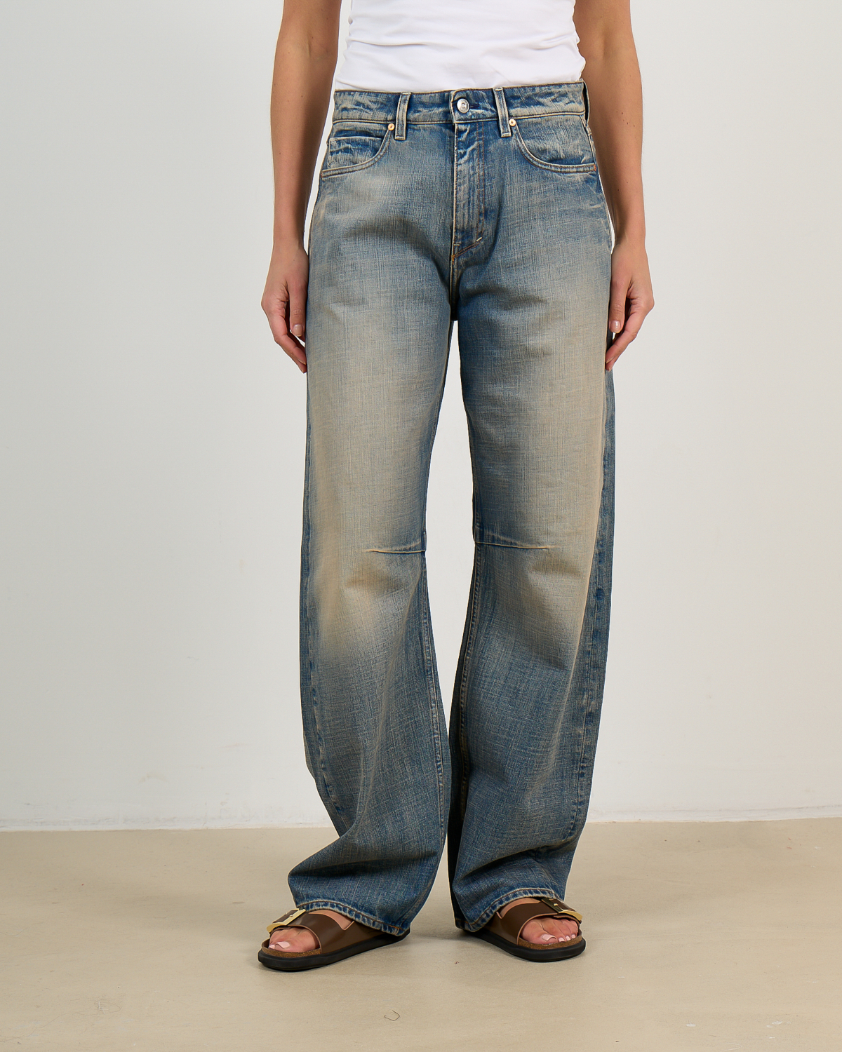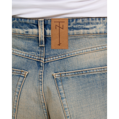 Deze baggy denim van Tenue in lichte vintage spoeling straalt relaxte elegantie uit. Het 100% organische katoen voelt zacht aan en biedt optimaal comfort. De ruime baggy fit met hoge taille creëert een trendy silhouet. Klassieke vijf-zak styling, riemsluiting en contrasterende stiksels completeren het ontwerp.