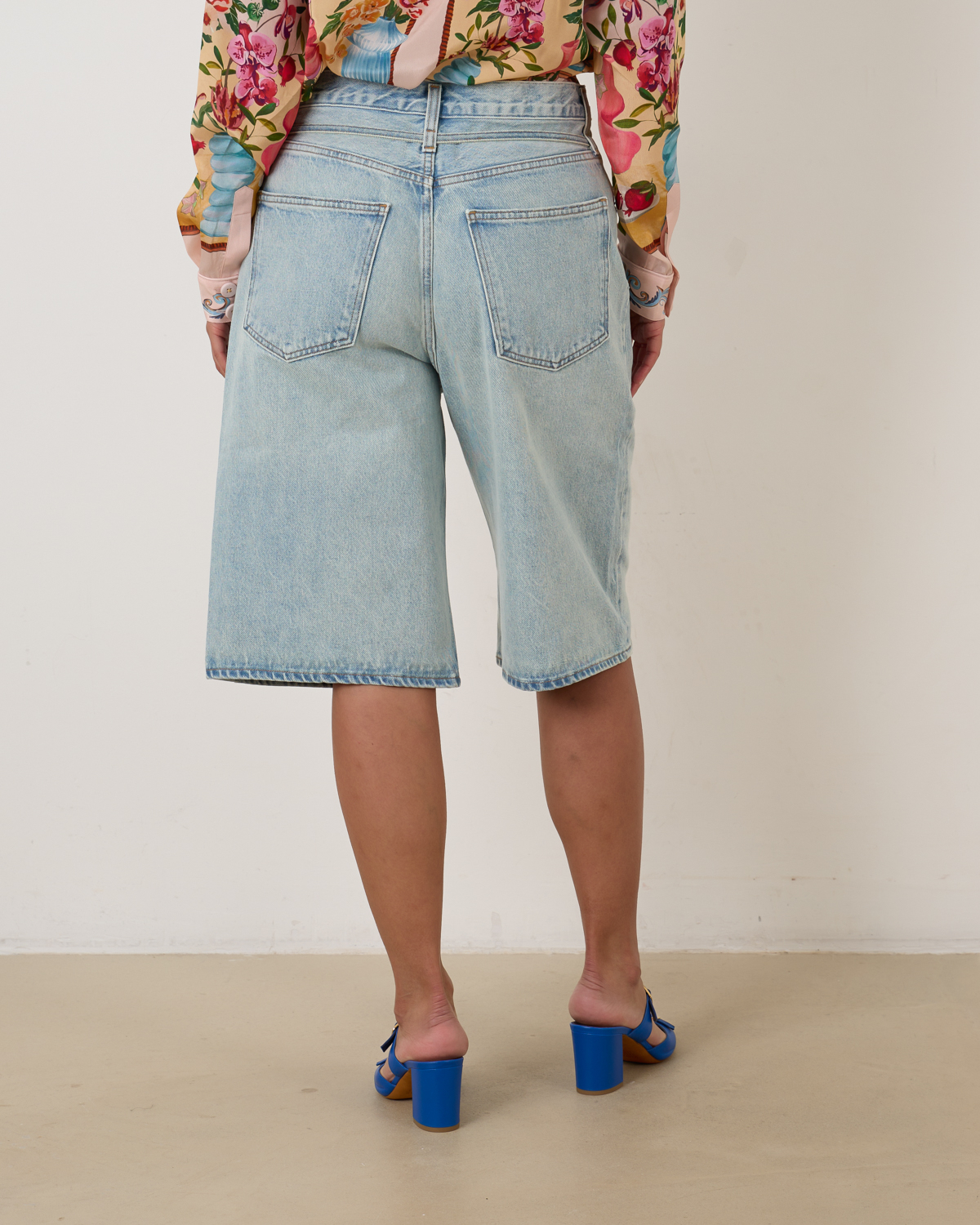 De Emmi Shorts van Agolde is oversized en biedt een stoere, slouchy look. De shorts is uitgevoerd in licht gewassen indigo denim en afgewerkt met subtiele destroyed details. De 5-pocket style heeft een lange binnenbeenlengte en is afgewerkt met een ceintuur.