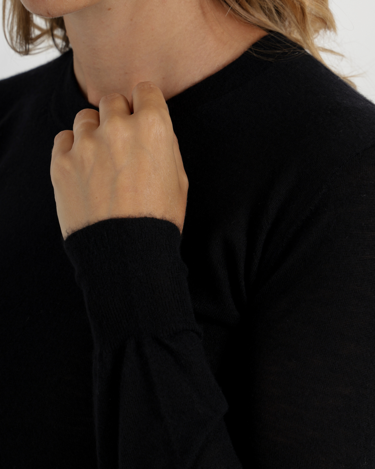 Jumper van het merk Joseph in de kleur zwart. De ronde hals trui heeft een reguliere pasvorm en is gemaakt van licht transparant puur kasjmier. Deze trui is vervaardigd met geribbelde zoom, manchetten en halslijn voor een luxueuze afwerking.