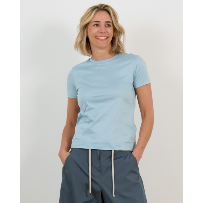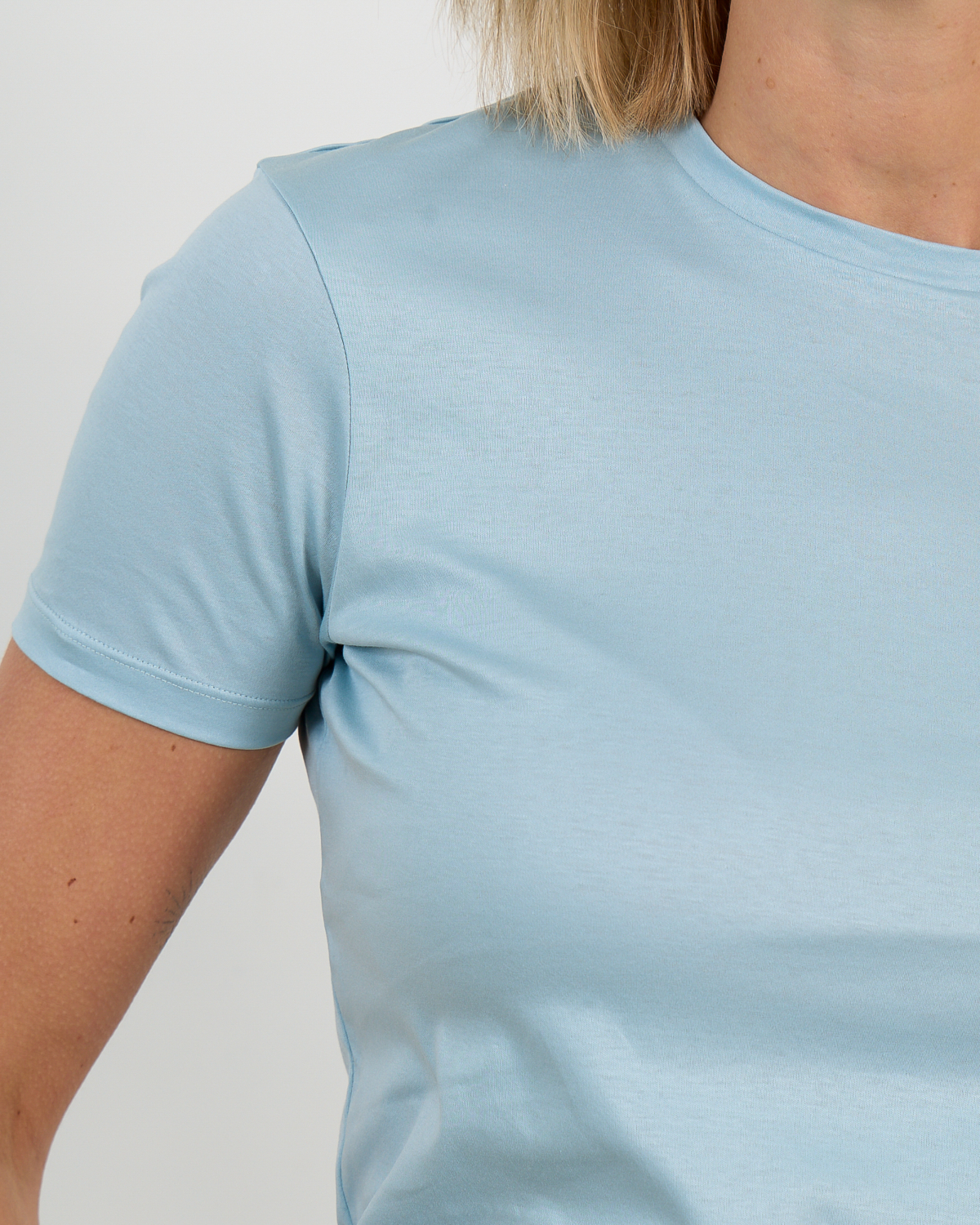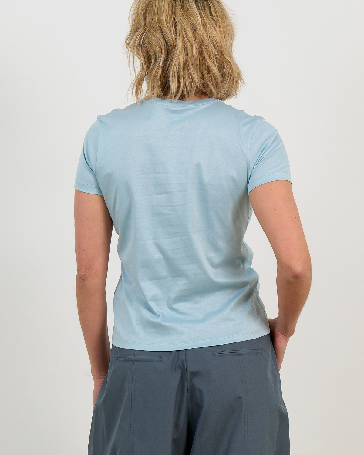 Combineer dit lichtblauwe chambray t-shirt met een donkerblauwe blazer voor een zakelijke look, of draag het onder een kimono-style vest. Voor een casual outfit kun je het Livia t-shirt stijlen met een denim jacket of een oversized trui over je schouders. Het Joseph t-shirt past prachtig bij witte pantalons of een midi-rok.